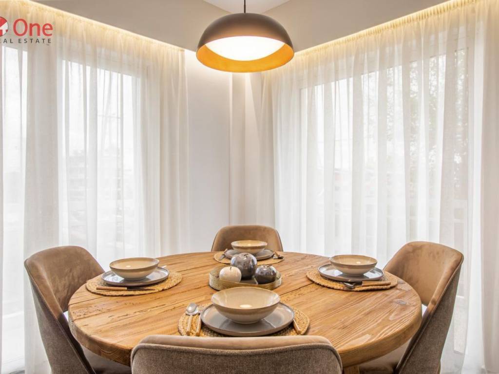 The apartment comes fully furnished, accentuated by elegant ceramic tile flooring. It is equipped with an autonomous heating system powered by natural gas, complemented by aluminum joinery with double glazing, ensuring both comfort and energy efficiency. Additional features include a secure door, a designated parking spot, freshly painted walls, and pest nets for added convenience.