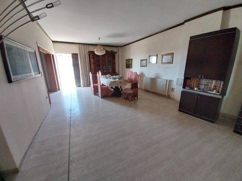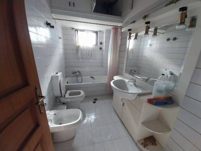 For sale 2-level house 275sqm. on a plot of 220sqm. Airy and very bright Year of construction 1970 Consists of: A yard 30sqm. at the back with a garage and its own entrance. Basement 35sqm Ground floor shop 100sqm. rented at 250 euros per month. Raised ground floor with a room 20sqm. 1st floor 120sqm. with 3 bedrooms with wardrobes, a fitted kitchen, A large and open living room/living room 2 bathrooms with water heaters and a loft 2 balconies, one in front and one in the back with shade awnings. A common area on the right of the house Features: Security door, elevator, aluminum frames with double glazing Solar water heater A/C in all rooms Alarm. Price 190,000 NEGOTIABLE