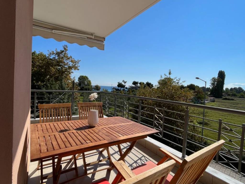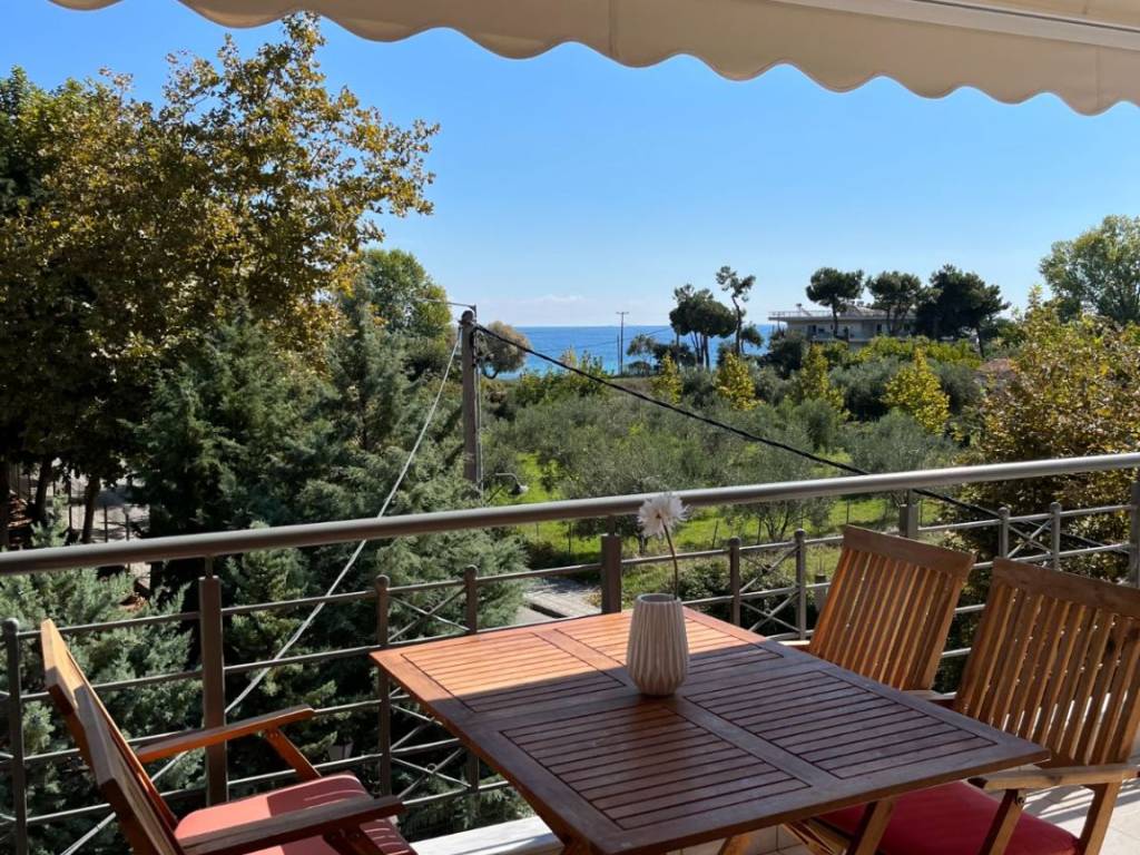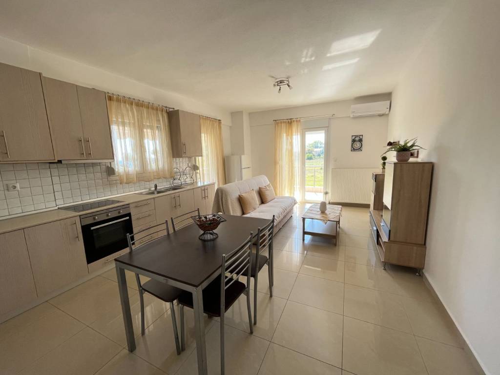Bright and fully furnished apartment available for long-term rental in Leptokarya, Pieria, just 100 meters from the beach. The apartment features: Two bedrooms and one bathroom. A spacious open-plan living room and kitchen. Three balconies offering stunning views of the Aegean Sea and Mount Olympus. Amenities included: Independent oil heating, air conditioning, and a solar water heater. Free high-speed satellite internet (Starlink). The property is available for seasonal rental too. Price: €5,000