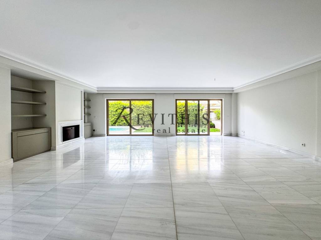 Maisonette For rent, floor: Semi-basement, Ground floor (2 Levels), in Kifisia - Kefalari. The Maisonette is 350 sq.m. and it is located on a plot of 400 sq.m.. It consists of: 4 bedrooms (3 Master), 4 bathrooms, 1 wc, 1 kitchens, 2 living rooms and it also has 2 parkings (2 Underground). The property was built in 2004. Its heating is Autonomous with Natural gas, it has Alluminum frames with Double glazed windows, the energy certificate is: B and its floors are Wooden, Marble. The property's status is: Excellent condition, it is close to Transportation, Park, School, Square, Church, Super Market, Mall, City Center, Entertainment centers, Cafe/Restaurants, Local market. The Maisonette is On Corner, Airy, Sunny, Luxury and it also has the following unique features and advantages: Window Screens, Storage, Internal staircase, Swimming pool, Garden, Security door, Security alarm, Internet, Playroom, Three phase current, Grass, Pets allowed, Service/Maid’s room. Price: €8.500. Revithis Real Estate, contact phone: 2108135181, 2108136111, email: info@revithis.com, athens@revithis.com, website: