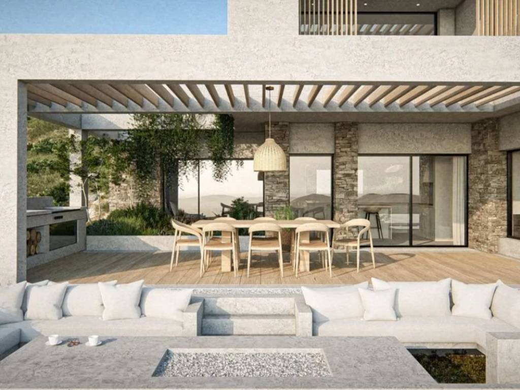 Σε μια υπερυψωμένη, απόλυτα ήσυχη τοποθεσία της Τήνου, με ανεμπόδιστη θέα στο Αιγαίο και ιδανικό νότιο προσανατολισμό, αναπτύσσεται μια κατοικία σχεδιασμένη για όσους αναζητούν κάτι περισσότερο από μια απλή εξοχική κατοικία. Εδώ, το τοπίο, το φως και η αρχιτεκτονική συνυπάρχουν σε απόλυτη ισορροπία, δημιουργώντας ένα περιβάλλον αυθεντικής ηρεμίας και διακριτικής πολυτέλειας. Η τοποθεσία της κατοικίας είναι από εκείνες που σπανίζουν πλέον στις Κυκλάδες. Σε αγροτεμάχιο 4 στρεμμάτων, με πλήρη ιδιωτικότητα, με απόσταση μόλις 6 χιλιομέτρων από το λιμάνι της Τήνου, προσφέρει απρόσκοπτη θέα προς τη θάλασσα και ιδανικές συνθήκες φωτισμού καθ’ όλη τη διάρκεια της ημέρας. Ο συνδυασμός νότιου προσανατολισμού, υπερυψωμένης θέσης και σύγχρονης υπό κατασκευή κατοικίας αποτελεί πλέον εξαιρετικά σπάνιο πλεονέκτημα στο νησί. Η αρχιτεκτονική της κατοικίας ακολουθεί μια σύγχρονη, καθαρή γραμμή, πλήρως εναρμονισμένη με το κυκλαδίτικο τοπίο. Φυσική πέτρα και εμφανές σκυρόδεμα συνθέτουν ένα αποτέλεσμα διαχρονικής αισθητικής, ενώ οι όγκοι της κατασκευής «ανοίγουν» επιλεκτικά προς τη θάλασσα, προστατεύοντας παράλληλα τους εσωτερικούς και τους αίθριους χώρους από τους ανέμους. Κάθε χώρος έχει τοποθετηθεί με στόχο να πλαισιώνει τη θέα και να ενισχύει την αίσθηση ιδιωτικότητας και ηρεμίας. Η κατοικία έχει συνολικό εμβαδόν 270 τ.μ. και βρίσκεται υπό κατασκευή. Το ισόγειο, επιφάνειας 156 τ.μ., περιλαμβάνει χώρους υποδοχής, καθιστικό, κουζίνα και τραπεζαρία που επικοινωνούν άμεσα με τις μεγάλες βεράντες και τον κήπο. Στο ίδιο επίπεδο αναπτύσσονται δύο υπνοδωμάτια με ιδιωτικά en suite λουτρά, καθώς και η κυρίως κρεβατοκάμαρα με δικό της λουτρό και ιδιωτική μικρή πισίνα μπροστά στη βεράντα της. Στον όροφο βρίσκεται ένα ακόμη υπνοδωμάτιο με μεγάλο λουτρό, καθώς και ένας ανεξάρτητος ξενώνας με ξεχωριστή είσοδο, ιδιωτικό λουτρό και βεράντα, προσφέροντας πλήρη αυτονομία στους φιλοξενούμενους. Οι βοηθητικοί χώροι οργανώνονται στο υπόγειο, όπου προβλέπεται μεγάλη αποθήκη 62 τ.μ. και μηχανοστάσιο. Οι εξωτερικοί χώροι αποτελούν αναπόσπαστο κομμάτι της εμπειρίας κατοίκησης. Μεγάλες βεράντες, διαμορφωμένος κήπος, χώρος BBQ και κεντρική πισίνα 50 τ.μ. συνθέτουν ένα περιβάλλον ιδιωτικής θερινής διαβίωσης, με ανεμπόδιστη θέα προς το Αιγαίο. Από το σαλόνι, την τραπεζαρία, την κυρίως κρεβατοκάμαρα και τον ξενώνα, η θέα εκτείνεται απρόσκοπτα προς τη θάλασσα, ενώ ο νότιος προσανατολισμός εξασφαλίζει μοναδικές συνθήκες φωτός και κλίματος. Το έργο ξεχωρίζει λόγω της υπογραφής κατασκευαστή με τριών γενεών εμπειρία, συνδυάζοντας τεχνογνωσία και ποιότητα. Ο αρχιτεκτονικός σχεδιασμός, αποτέλεσμα συνεργασίας βρετανικού και τοπικού γραφείου, ενσωματώνει αρμονικά τη σύγχρονη αρχιτεκτονική στο κυκλαδίτικο τοπίο. Με την ολοκλήρωσή της, η κατοικία θα καταταγεί στην ενεργειακή κλάση Α+, ενσωματώνοντας σύγχρονες τεχνολογίες και υψηλές κατασκευαστικές προδιαγραφές. Πρόκειται για μια σπάνια πρόταση που απευθύνεται σε όσους αναζητούν αρχιτεκτονική ποιότητα, ιδιωτικότητα και διαχρονική αξία σε έναν από τους πιο αυθεντικούς προορισμούς των Κυκλάδων. Set on an elevated and tranquil hillside in Tinos, just 6 km from the port, this south-facing residence enjoys uninterrupted views across the Aegean Sea and complete privacy within a generous 4,000 sq.m. plot. The setting offers a rare combination of openness, light and seclusion, increasingly difficult to find in the Cyclades today. Designed to integrate seamlessly with the natural landscape, the architecture blends cont