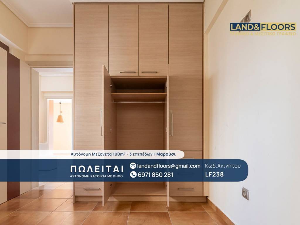 ΠΩΛΕΙΤΑΙ – Ανεξάρτητη Μεζονέτα στο Μαρούσι με 3 Υ/Δ Περιοχή Σωρού – Λάκκα Κόττου | Κωδικός Ακινήτου: LF238 Πωλείται ανεξάρτητη μεζονέτα συνολικού εμβαδού περίπου 190 m² , κατασκευής 2010, σε τμήμα οικοπέδου εμβαδού 144 m², που προσφέρει την αυτονομία της μονοκατοικίας, σε ήσυχη και ποιοτική γειτονιά του Αμαρουσίου. Η κατοικία αναπτύσσεται σε τρία επίπεδα και εξυπηρετείται από εσωτερική σκάλα. Διαθέτει ιδιωτικό κήπο, βεράντες, μπαλκόνια και ταράτσα με ελεύθερη θέα, στοιχεία που ενισχύουν τον χαρακτήρα μιας αυτόνομης και λειτουργικής κατοικίας, κατάλληλης για ζευγάρια, οικογένειες και γενικά για όσους επιθυμούν ιδιωτικότητα και ανεξαρτησία. Το ημιυπόγειο επίπεδο περιλαμβάνει κύριους και βοηθητικούς χώρους. Σε αυτή τη στάθμη ο χώρος είναι διαμορφωμένος ως ενιαίος με τζάκι, ενώ διαθέτει επιπλέον ξεχωριστό δωμάτιο που μπορεί να λειτουργήσει ως ξενώνας, γραφείο, δωμάτιο ψυχαγωγίας κ.α. καθώς και μπάνιο με ντουζιέρα. Στο επίπεδο αυτό υπάρχουν επίσης βοηθητικοί αποθηκευτικοί χώροι. Το ημιυπόγειο επικοινωνεί εσωτερικά με την κατοικία, αλλά είναι δυνατή η πρόσβαση και από ανεξάρτητη εξωτερική είσοδο, στοιχείο που επιτρέπει ευέλικτη χρήση των χώρων. Έχει προβλεφθεί κλειστός χώρος στάθμευσης με ράμπα, ο οποίος στην παρούσα φάση δεν χρησιμοποιείται ως parking. Το υπερυψωμένο ισόγειο αποτελεί τον βασικό χώρο καθημερινής διαβίωσης. Περιλαμβάνει μεγάλο χώρο υποδοχής με ενιαία διάταξη, ιδανικό για διαμόρφωση σαλονιού, καθιστικού και τραπεζαρίας, καθώς και ευρύχωρη, πλήρως εξοπλισμένη κουζίνα. Η κουζίνα έχει άμεση πρόσβαση σε άνετη σκεπαστή βεράντα και στον κήπο της κατοικίας, όπου βρίσκεται και το εξωτερικό BBQ, προσφέροντας ιδανικές συνθήκες για καθημερινή χρήση αλλά και για φιλοξενία. Στον πρώτο όροφο βρίσκονται τρία (3) υπνοδωμάτια με εντοιχισμένες ντουλάπες και το κύριο μπάνιο της κατοικίας, το οποίο διαθέτει μπανιέρα υδρομασάζ. Υπάρχει πρόβλεψη για δημιουργία kitchenette στον όροφο, για όποιον νέο ιδιοκτήτη επιθυμεί διαφορετική ή μελλοντική αξιοποίηση των χώρων. Από τον πρώτο όροφο υπάρχει πρόσβαση στην ταράτσα μέσω εσωτερικής ξύλινης σκάλας, η οποία προσφέρει ελεύθερη θέα και επιπλέον δυνατότητες χρήσης. Η κατοικία διαθέτει: αυτόνομη θέρμανση πετρελαίου, ηλιακό θερμοσίφωνα, εγκατάσταση συναγερμού, δορυφορική κεραία, σύγχρονα εξωτερικά κουφώματα με διπλά τζάμια και σίτες, ηλεκτρικά ρολά, τέντες, πόρτα ασφαλείας, εντοιχισμένες συσκευές στην κουζίνα. Η κατοικία ΔΕΝ διαθέτει ασανσέρ – ανελκυστήρα Τα δάπεδα είναι από πλακάκι σε όλους τους χώρους. Το ακίνητο είναι φωτεινό, ευάερο, ευήλιο, προσόψεως και διαμπερές, ιδιαίτερα προσεγμένο και πολύ καλά συντηρημένο, κατασκευασμένο με ποιοτικά υλικά. Είναι φιλικό προς τα κατοικίδια, καθώς τόσο ο κήπος όσο και οι εξωτερικοί χώροι προσφέρονται για τη φιλοξενία τους. Η ενεργειακή του κλάση είναι Β. Το ακίνητο διαθέτει πλήρη φάκελο εγγράφων και σχεδίων, γεγονός που το καθιστά άμεσα διαθέσιμο για τεχνικό και νομικό έλεγχο από τον αγοραστή, καθώς και για μεταβίβαση. Η διεύθυνση δεν είναι η ακριβής, όμως το ακίνητο βρίσκεται στην ευρύτερη περιοχή που έχει σημανθεί στον χάρτη. Για την παροχή λεπτομερέστερων πληροφοριών, περισσότερων φωτογραφιών, εγγράφων - σχεδίων και την υπόδειξη του ακινήτου απαιτούνται η υπογραφή Εντολής Αγοραστή και η επίδειξη αστυνομικής ταυτότητας όλων των ενδιαφερόμενων που επισκέπτο