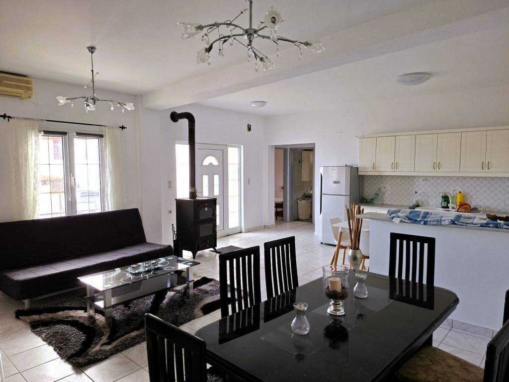 In one of the most authentic and tranquil villages of Crete, Mythoi, Ierapetra, set in a peaceful and picturesque environment, a tasteful and bright 90 sq.m. upper-floor apartment is available for long-term rental, located on the first and top floor. The residence combines quality construction with refined aesthetics, privacy, and natural beauty. It is offered fully furnished and equipped with electrical appliances, providing comfort and functionality for permanent living. The apartment consists of: • A spacious open-plan living room and kitchen, ideal for everyday living and entertaining • Two comfortable bedrooms with natural light • One elegant bathroom • Outdoor balcony The generous balcony offers unobstructed views of the village and the surrounding mountains. Via an external staircase, there is access to a private rooftop terrace, featuring panoramic views of nature, the mountains, and distant sea views. Ideal for a couple, small family, digital nomads, or individuals seeking a permanent residence in a quiet, authentic Cretan village surrounded by natural beauty, within easy reach of Ierapetra. Property location: • Distance from the coastal town of Ierapetra: 20 km • Distance from the famous seaside village of Myrtos • Distance from the sea: 4.1 km • Altitude: 200 meters Rental price: €500 / month About the village of Mythoi: The village of Mythoi, Ierapetra, is a small traditional village in Crete, located in the Regional Unit of Lasithi and administratively part of the Municipality of Ierapetra. It lies approximately 20 km north/northwest of Ierapetra, in a lush green setting between valleys and mountains. The surrounding landscape is rich in greenery, with agricultural land, walking paths, and natural water sources. Mythoi is a lively village with a strong social and cultural life, featuring a central square shaded by centuries-old plane trees, traditional cafés, local products, music, and cultural events. Nearby, the Sarakina Gorge is one of the area’s most notable natural attractions, with impressive vertical rock formations and rich flora and fauna, making it ideal for hiking and exploration. Mythoi is a small community of a few hundred residents (just over 300 according to census data), characterized by traditional agricultural life and strong local ties. The village is also close to the coastal village of Myrtos, known for its beautiful beach and tourist amenities, located approximately 5 km from Mythoi.