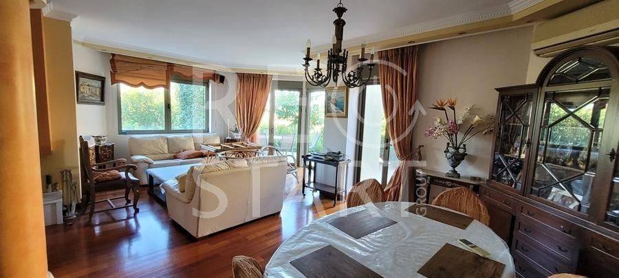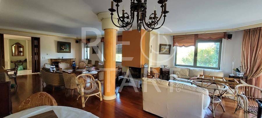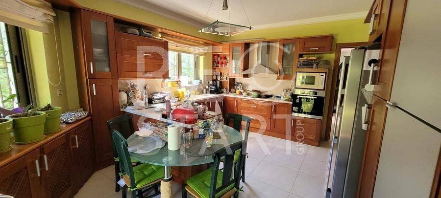 Pallini (Attica - Eastern Suburbs), Kantza - Detached House 420sqm plot 590sqm, bedrooms 5, levels 3, basement (160sqm) - ground floor (120sqm) - 1st (140sqm), very good condition, year built 2003, energy class D, 2 living rooms, hall, kitchen, 3 bathrooms, 3 wc, heating type: autonomous (oil), air condition, parking open space+covered, unobstructed view view, drop ceiling, electric roller shutters, storage space, boiler, fireplace, balconies, large balconies, elevator, garden, garden 200sqm, private terrace, aluminum frames, double glazed windows, door screen, wood & stone floors, handicap ramp, separate kitchen, three phase electricity, secure door, surveillance cameras, video doorbell, luxurious, internal staircase, playroom, guest house, satellite, internet, internal elevator, laundry room, pets allowed, residential zone, access from asphalt.