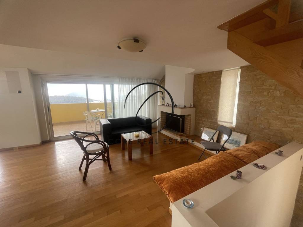 Apartment For rent, floor: 4th, in Melissia - Ano Melissia. The Apartment is 110 sq.m., In Melissia, this 110 sq.m. penthouse is ideal for couples or singles. It features 64 sq.m. of main spaces and 48 sq.m. auxiliary areas. The living room, with a fireplace and dining area, opens to a large veranda with an unobstructed view. The kitchen includes a secondary sitting area, there is a bathroom with a bathtub, and a space converted into a walk-in closet. The bedroom is located in the loft above the living room, offering a private, unique space. Access to the apartment is direct via elevator, ensuring convenience and a touch of luxury. Bright and comfortable, it’s ready to become your new home!. It consists of: 1 bedroom, 1 bathroom, 1 kitchen, 1 living room. Its heating is Autonomous with Oil, Radiator are also available, it has Alluminum frames with Double glazed - Energy Efficient windows, the energy certificate is: E and its floors are Tiles, Wooden. The property's status is: Very good condition, it has Mountain, Nature, Openness, Panoramic, Unobstructed view and it has Meridian orientation. The Apartment is Whole floor, Painted, Penthouse, With Facade, Bright, Airy, Sunny, Airy and it also has the following unique features and advantages: Window Screens, Elevator, Internal staircase, CCTV, BBQ, Quiet neighborhood, Porch, Electric shutters. Price: €800. CCRE GROUP , contact phone: 2130223537, 6945072569, email: info@ccre.gr, website: www.ccre.gr