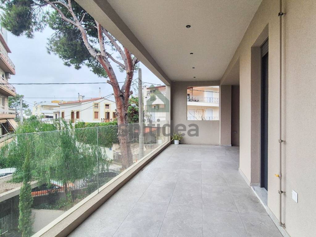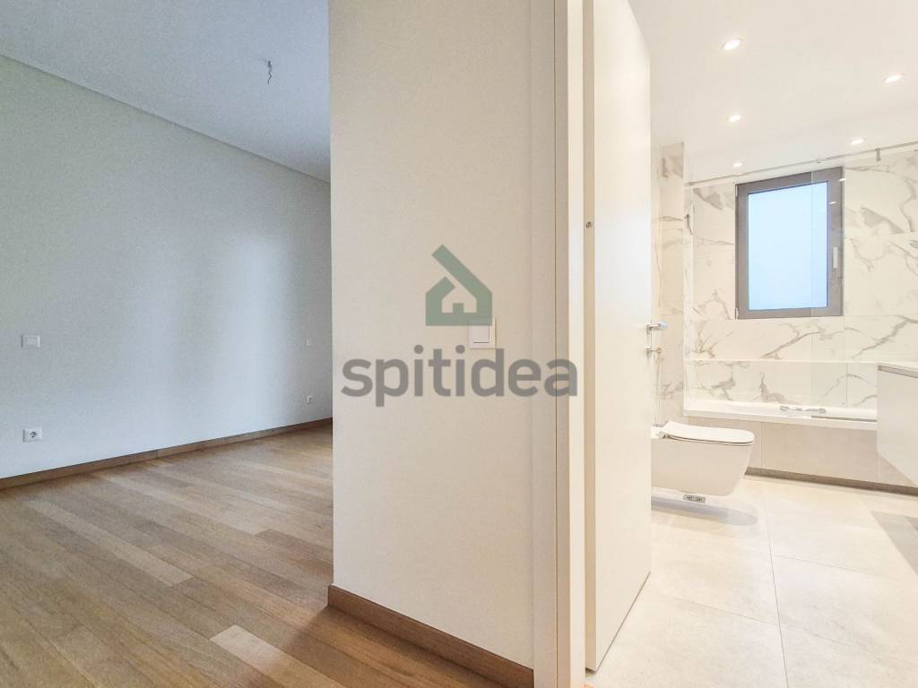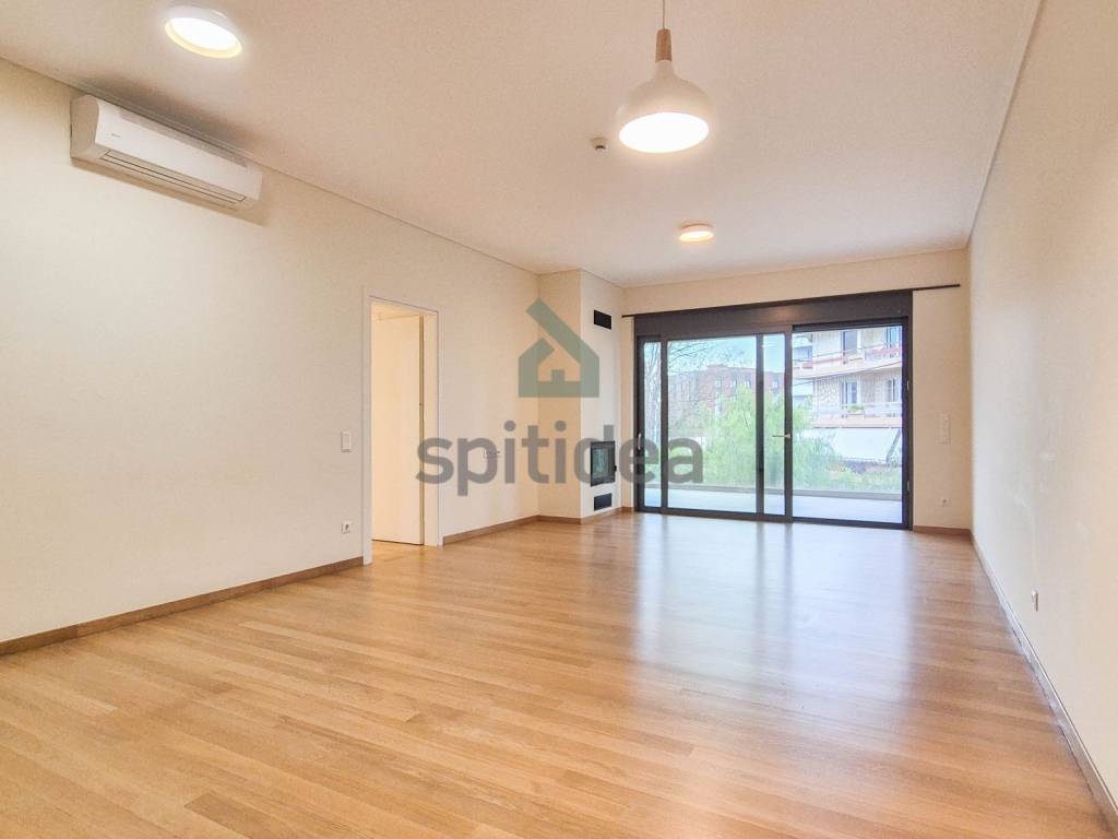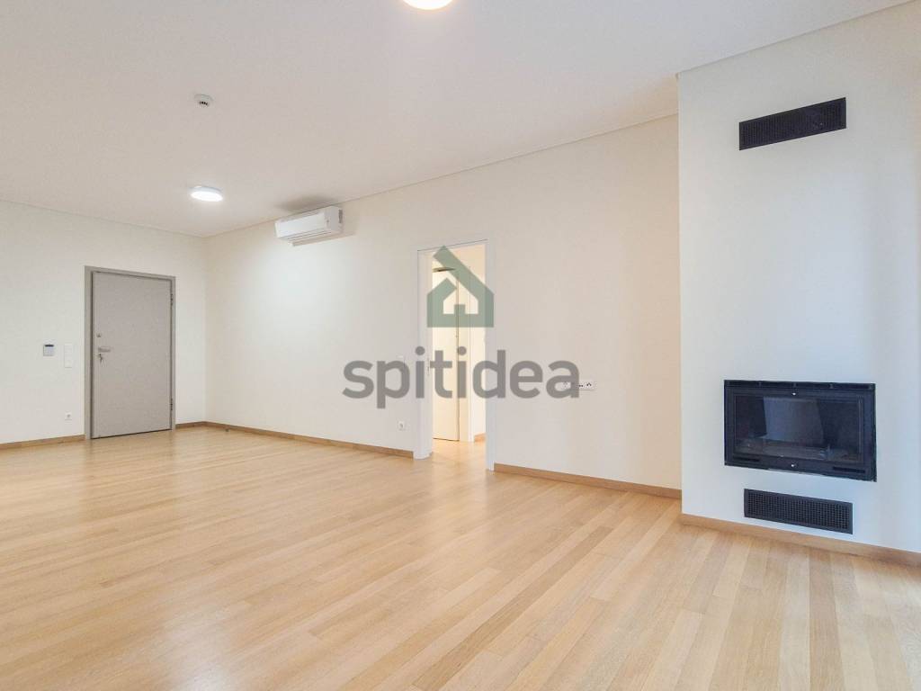 This is a newly built apartment of 120sqm on the 1st floor of a building of excellent aesthetics and construction of 2023. It consists of a large living room with energy fireplace, an independent kitchen equipped with a built-in electric oven and dishwasher, 3 bedrooms (one of which is a master with its own bathroom), an additional bathroom and WC. It has heating (underfloor) and cooling with a heat pump, security door, alarm, thermally insulated aluminum frames with double glazing, screens and electric roller shutters, solar water heater, video door entry system, large balcony with access from the living room and one bedroom as well as auxiliary balconies in the other rooms. The apartment also includes 2 parking spaces (one underground and one pilot) and a 5sqm storage room. It is located in a very good location, next to the center of Chalandri, with easy access to central roads.
