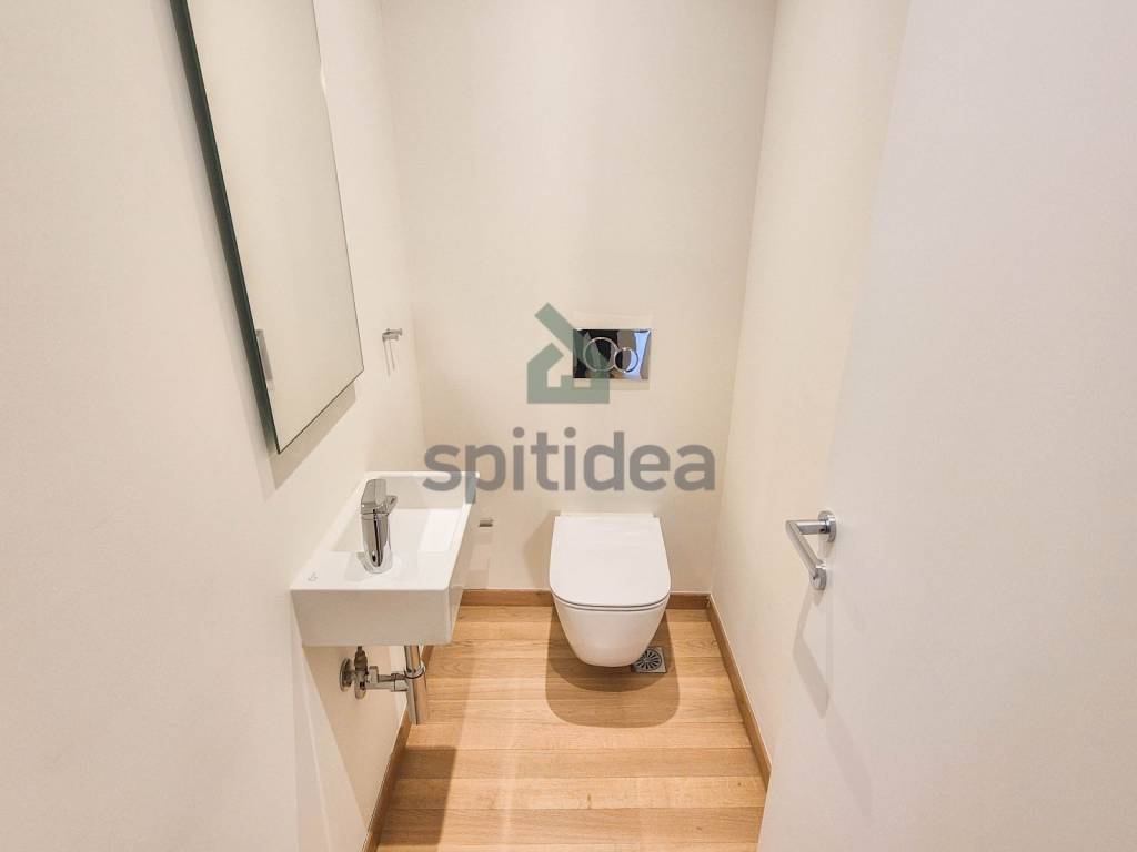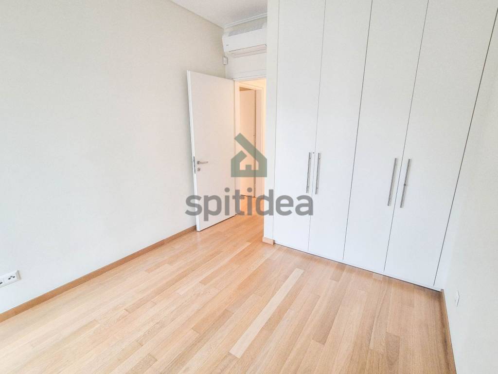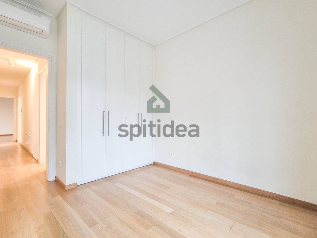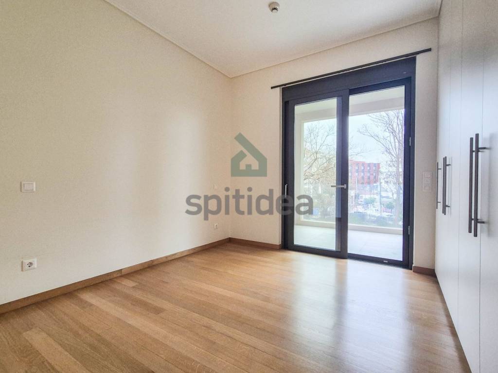 This is a newly built apartment of 120sqm on the 1st floor of a building of excellent aesthetics and construction of 2023. It consists of a large living room with energy fireplace, an independent kitchen equipped with a built-in electric oven and dishwasher, 3 bedrooms (one of which is a master with its own bathroom), an additional bathroom and WC. It has heating (underfloor) and cooling with a heat pump, security door, alarm, thermally insulated aluminum frames with double glazing, screens and electric roller shutters, solar water heater, video door entry system, large balcony with access from the living room and one bedroom as well as auxiliary balconies in the other rooms. The apartment also includes 2 parking spaces (one underground and one pilot) and a 5sqm storage room. It is located in a very good location, next to the center of Chalandri, with easy access to central roads.