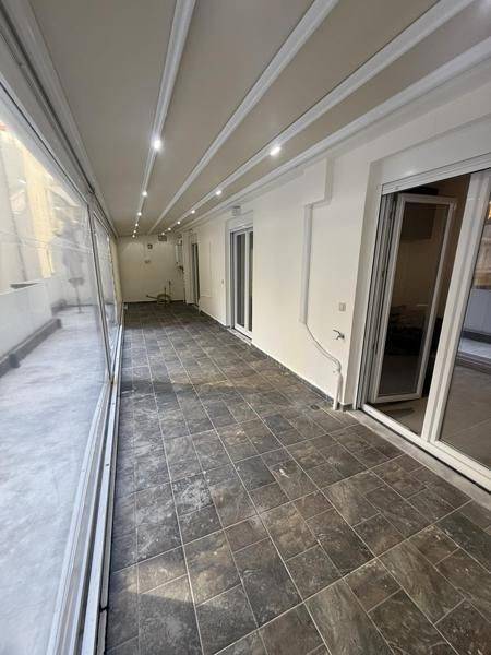 Thessaloniki, Centre - Apartment 90sqm partially furnished, bedrooms 2, levels 1, 1st, fully renovated, energy class D, living room, kitchen, bathroom, heating type: autonomous (natural gas), air condition, large balconies, balcony 35sqm, tents, elevator, synthetic frames, double glazed windows, ceramic tiles floors, secure door, residential zone, access from asphalt.