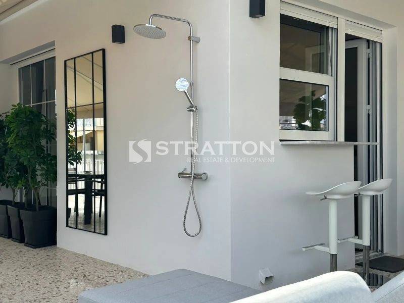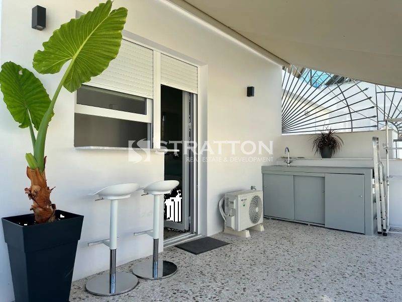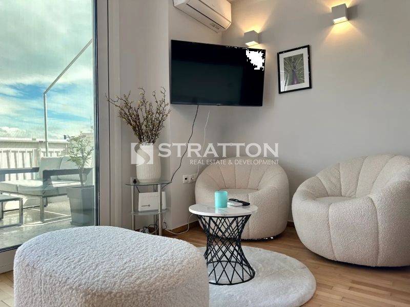 It features a private 120 sq.m. terrace with unobstructed views, including views of the Acropolis. Walking distances: 5 minutes from the bus stop, 9 minutes from the metro station (green line), 30 minutes from the Acropolis, very close to Athens’ Historic Center and its many landmarks.
