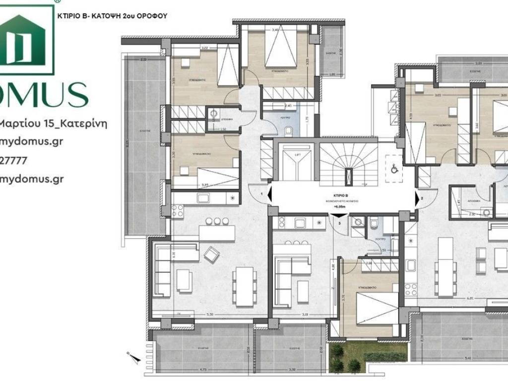 MY DOMUS ΠΩΛΟΥΝΤΑΙ ΔΙΑΜΕΡΙΣΜΑΤΑ ΥΠΟ ΑΝΕΓΕΡΣΗ ΣΤΗΝ ΘΕΡΜΗ ΘΕΣΣΑΛΟΝΙΚΗΣ. Όλα τα διαμερίσματα είναι πολυτελούς κατασκευής καθώς βρίσκονται σε υπέροχο σημείο, ήσυχη γειτονιά, με κοινόχρηστο χώρο περιφερειακά της οικοδομής. Διαθέτουν προεγκατάσταση για ηλιακό θερμοσίφωνα, συναγερμό, κλιματιστικό, οπτική ίνα, δίκτυο ETHERNET, αποθήκη 3 τ.μ. στο ισόγειο και θέση στάθμευσης. Τα κουφώματα είναι αλουμινίου με διπλά ενεργειακά τζάμια θερμογέφυρας, πόρτα ασφαλείας και η θέρμανση είναι ενδοδαπέδια ατομική με φυσικό αέριο. Η κουζίνα είναι ιταλική όπως και τα πλακάκια που θα τοποθετηθούν. ΣΥΓΚΕΚΡΙΜΕΝΑ ΠΩΛΟΥΝΤΑΙ ΤΑ ΑΚΟΛΟΥΘΑ: ΟΙΚΟΔΟΜΗ B 1ΟΣ ΟΡΟΦΟΣ – 73.80 ΚΑΘΑΡΑ/ 93.96 ΜΙΚΤΑ