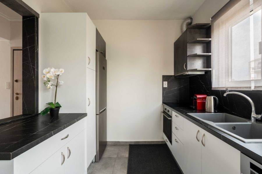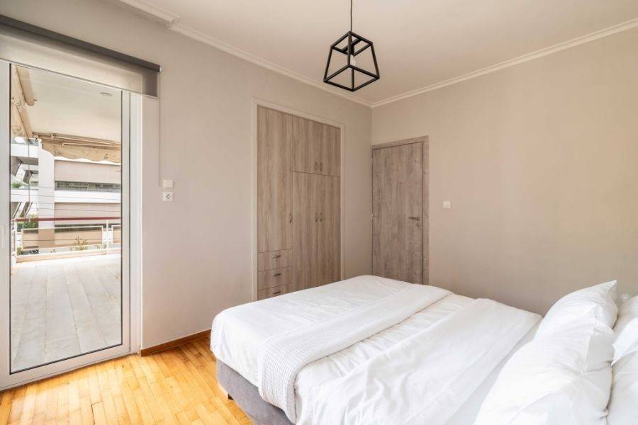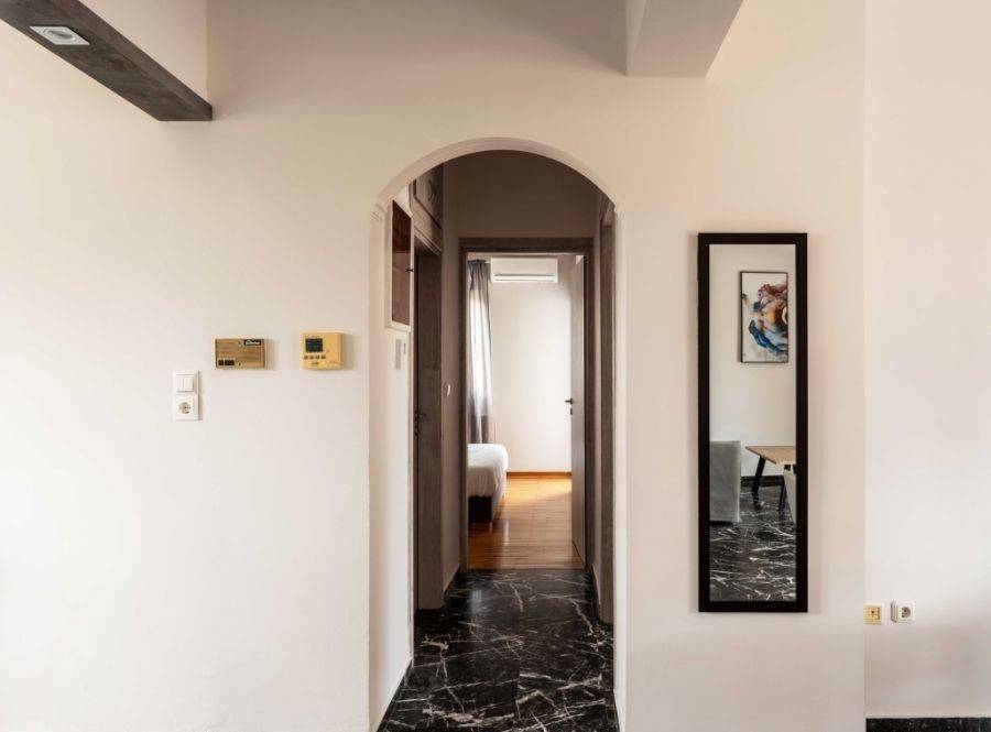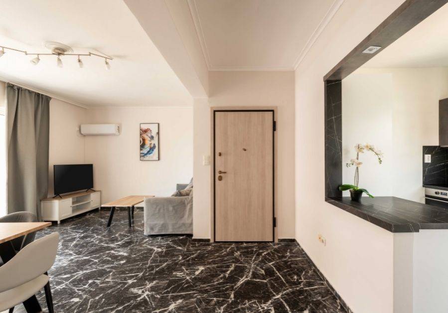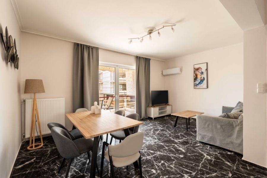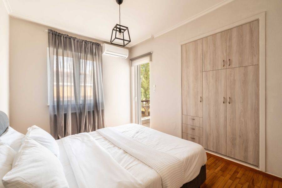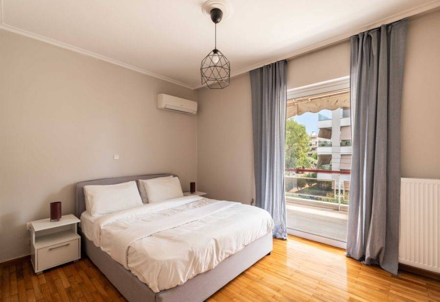 Voula, Evryali, Apartment For Rent, 75 sq.m., Property Status: Refurbished, Floor: 2nd, 1 Level(s), 2 Bedrooms 1 Kitchen(s), 1 Bathroom(s), Heating: Personal - Natural Gas, View: Cityscape, Building Year: 1960, Energy Certificate: B, Floor type: Wooden floors + Marble, Type of doors: Aluminum, Features: Elevator, Security door, Cable TV, Internet Line, Electric Appliances, Double Glazed Windows, Window Screens, Balcony Cover, Balconies, Pets Allowed, Luxury, Airy, Roadside, Bright, On Corner, AirConditioning, Solar water system, Painted, Renovated, Distance from: Seaside (m): 500, Price: 1.450€. Yestayhomes, Tel: 6986749007