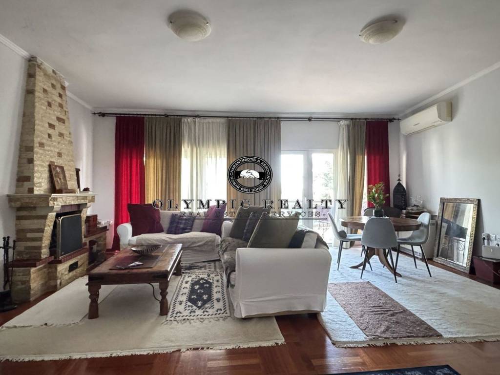 In a very good location, with unobstructed views of greenery, apartment of 136 sq m, 3rd floor, consisting of a very large reception area with fireplace and Iroko wooden floor, very large verandas, unobstructed views of the Grove and from the inside, independent spacious kitchen, 3 bedrooms, 2 fully renovated bathrooms, storage room inside the apartment and 1 large storage room of 26 sq m. in the basement. In addition, it has 1 parking space for a car. The apartment has an excellent layout and it is renovated: aluminum frames with double glazing, security door, renovated ergonomic kitchen, 2 renovated bathrooms, etc. It is located in a building built on a large plot with well-kept surrounding area with gardens. Code: 3201