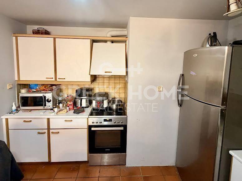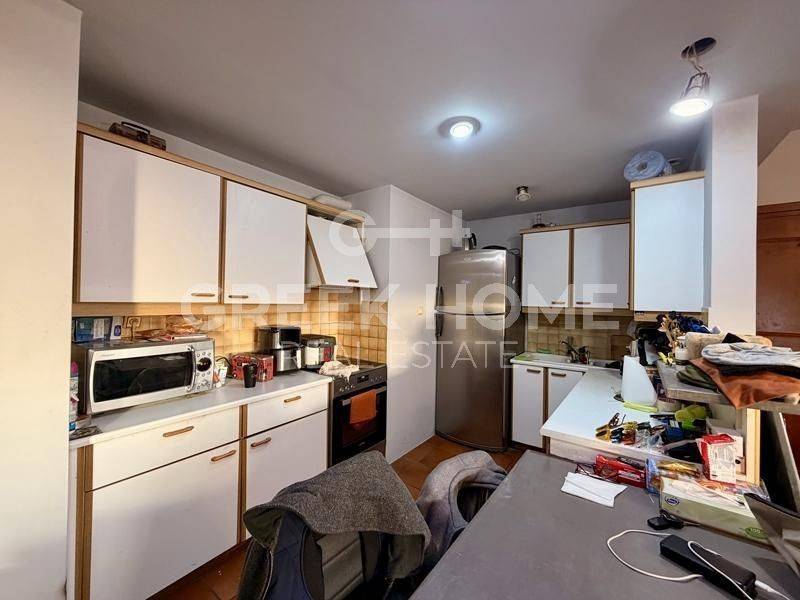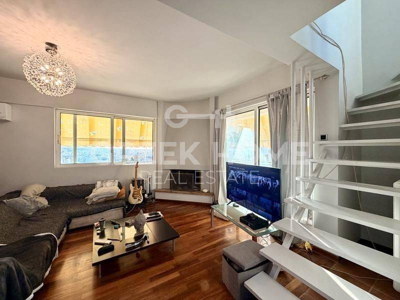 Iraklio (Attica - Northen Suburbs), Prasinos Lofos - Full floor Maisonette 105sqm bedrooms 3, levels 2, 5th, very good condition, year built 1997, energy class D, living room, kitchen, 2 bathrooms, heating type: autonomous (oil), air condition, parking open space, quiet, dual aspect apartment, luminous, corner, frontage, storage space 10sqm, solar heater, fireplace, balconies, large balconies, balcony 30sqm, tents, elevator, private terrace, terrace 30sqm, aluminum frames, wood & tile floors, secure door, internal staircase, southern orientation, price is negotiable, close to bus stop (up to 200m), close to entertainment (up to 500m), close to sports facilities (up to 500m), close to school (up to 200m), close to super market (up to 200m), close to metro/train (up to 500m), close to market (up to 500m), close to square (up to 500m).