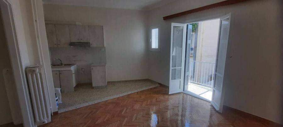 Airy and bright apartment for sale, frontage 57 sq.m. in the area "Patision Ave. - Acharnon Ave., Agios Nikolaos", on the 3rd floor with elevator, built in 1962, partially renovated, 100 meters from Metro Ag. Nikolaos in a very beautiful apartment building with a garden, quiet and bright. It consists of 1 bedroom with its own balcony facing the street in front, living room with its own balcony facing a very large covered area with unlimited views, large hall, kitchen, and bathroom. It has wooden frames and marble-wood floors. Additional features of the property include wardrobes. The property has an unlimited view. Price € 105.000.