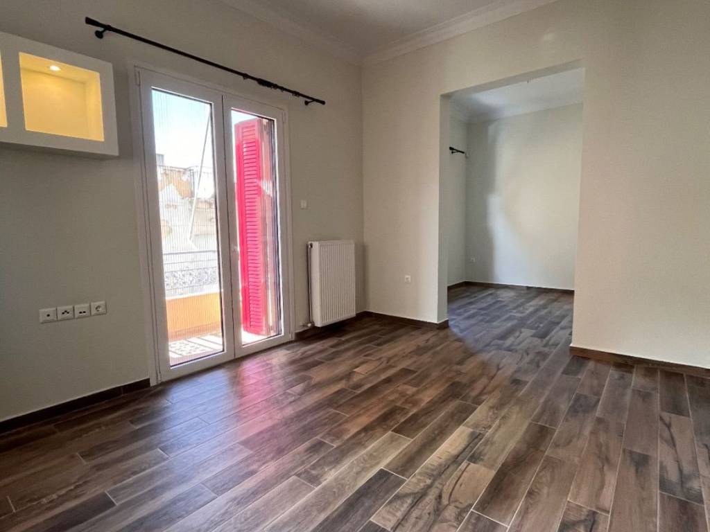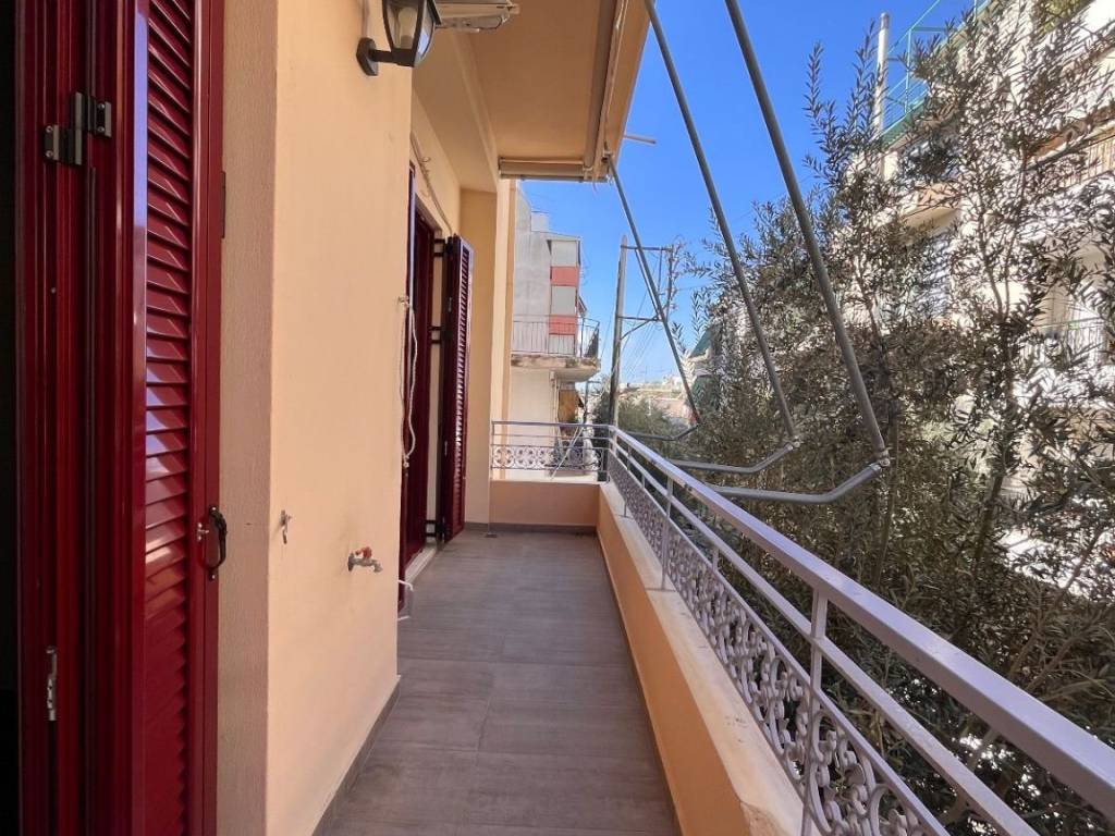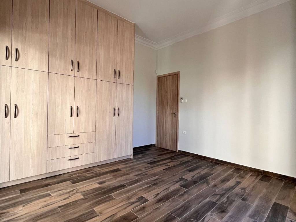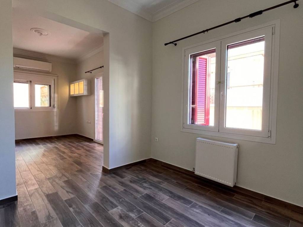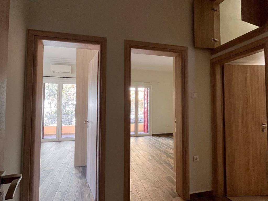AGIOS ARTEMIOS – for rent a 106 sq.m. floor apartment, fully renovated in 2020, located on a high 1st floor of a corner two-storey building with 1950s character. No shared/common expenses. The apartment consists of a spacious living room with an open-plan kitchen, a separate dining area, two bedrooms, a home office, one bathroom and one WC. It features high ceilings, is very bright and airy, dual-aspect, and has three balconies. The property is equipped with built-in electrical appliances. Amenities include autonomous heating with an electric boiler, three air-conditioning units with built-in Wi-Fi, energy-efficient thermal break window frames, insect screens, solar water heater, alarm system, awnings, loft storage, and ample built-in storage spaces. Two parking spaces are available optionally at an additional cost, in a nearby building, with a garage door and remote control. The apartment is located in a very good area, a 15-minute walk from Agios Ioannis metro station, close to shops, supermarkets, banks, and public transportation. Please note: the building does not have an elevator.