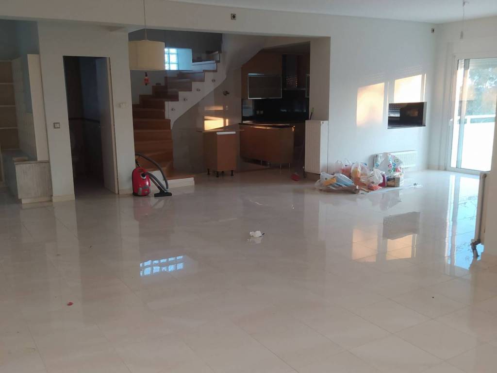 For sale luxurious maisonette, on a plot of 2000 sq m. The house is located just outside Markopoulo Mesogaias, in the quiet and beautiful area of ​​Merenta, on a main road. On the plot there are two identical maisonettes surrounded by a garden with grass and trees, as well as a fully equipped barbecue. The garden is irrigated by a borehole. The maisonette consists of 3 levels and an attic, connected by an internal staircase. It includes 4 bedrooms, 2 living rooms, 2 kitchens, 2 bathrooms, 1 wc, and two fireplaces. Each level has independent heating, air conditioning, and there is also a triple energy solar water heater. The floor is tiled and wood. It has aluminum frames, 2 security doors and a security alarm. There is also a storage room, 3 parking spaces, an electric garage door, a 42 cubic meter rainwater collection tank, and an unlimited view. Also, the second maisonette is being sold at a different price, the first floor of which is unfinished.