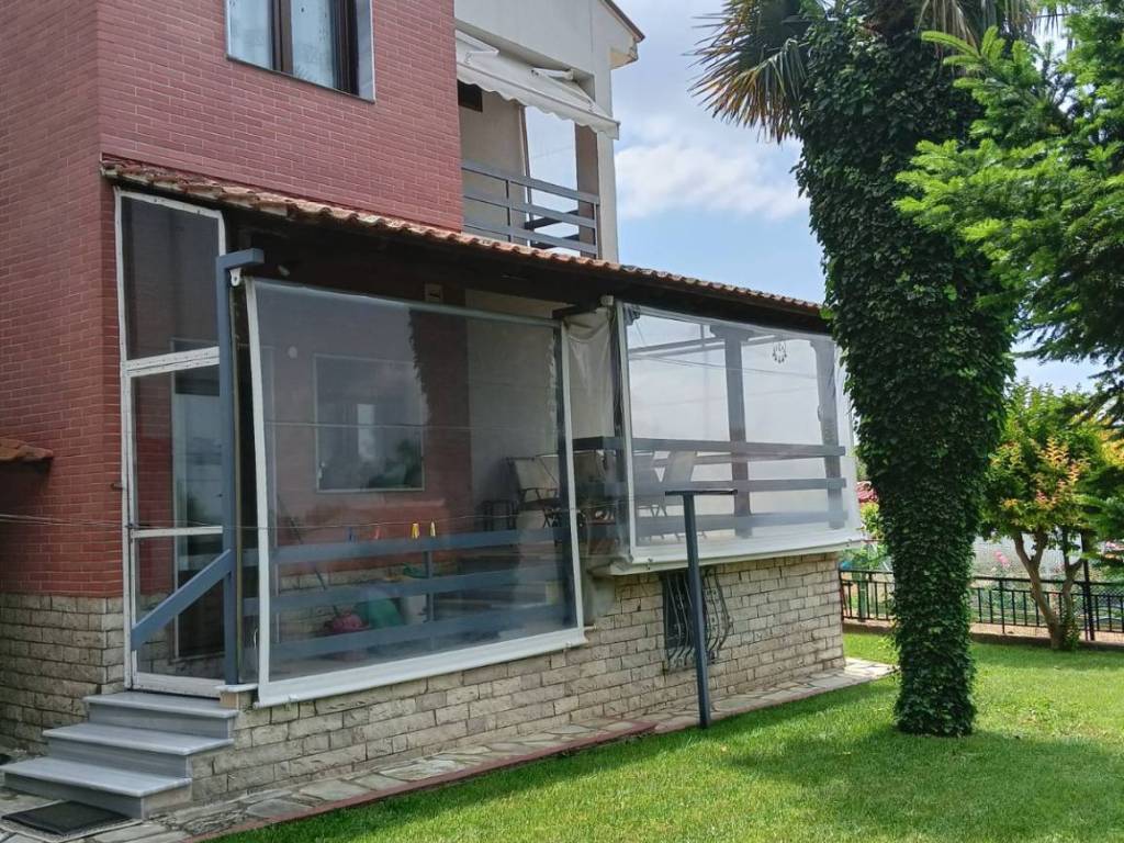 Διόροφη μονοκατοικία 179τμ σε οικόπεδο 700τκ, με εσωτερική σκάλα, τζάκι, αυτόνομη θέρμανση (πετρέλαιο), 3 υπνοδωμάτια, σαλόνι, ταπεζαρία, κουζίνα, δωμάτιο ξένων, δωμάτιο γραφείου, σέρα, βεράντες, κήπους εμπρός και πίσω, στεγασμένο πάρκινγκ, αποθήκη-πλυσταριό. Πλήρως επιπλωμένη με όλα τα έπιπλα και τις λευκές συσκευές και κλιματιστικά. Βρίσκεται εντός του οικισμού της Νέας Σάντας Κιλκίς.