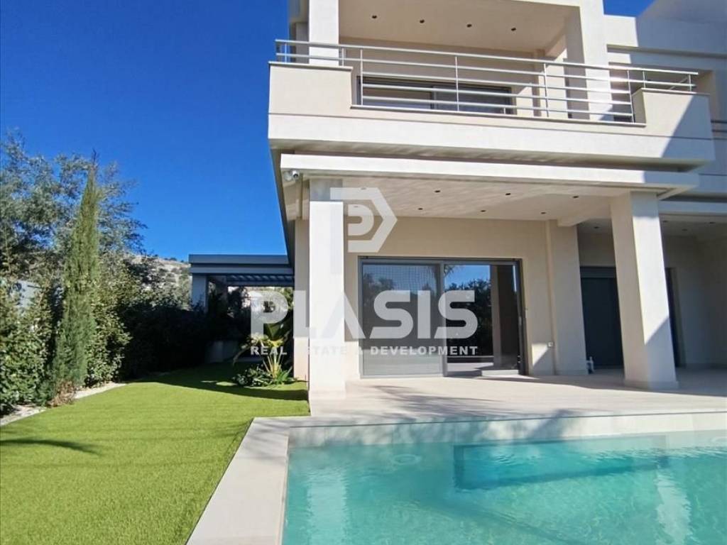 Detached house For sale, floor: Basement, Ground floor, 1st (3 Levels), in Vari - Varkiza - Varkiza. The Detached house is 540 sq.m. and it is located on a plot of 460 sq.m.. It consists of: 4 bedrooms, 5 bathrooms, 1 wc, 2 kitchens, 2 living rooms and it also has 6 parkings (6 Underground). The property was built in 2025. Its heating is Autonomous with Fan coil, Underfloor heating, Heating per level, Air conditioning, Solar water system, Boiler, Thermal insulation, Radiator, Thermal facade are also available, it has Alluminum, Thermal brake frames with Double glazed - Energy Efficient windows, the energy certificate is: A+ and its floors are Wooden. The property's status is: New development, Freshly painted, Excellent condition, it is close to Sea, City Center, 20 Km from airport, 1 Km from sea, it has Mountain, Nature, Openness view and it has EastWest orientation. The Detached house is With Facade, Bright, Airy, Luxury, Modern and it also has the following unique features and advantages: Window Screens, Tents, Elevator, Jacuzzi, Electric Appliances, Storage, Attic, Internal staircase, Swimming pool, Garden, Security door, Security alarm, Internal elevator, No shared expences, Night stream, Three phase current, Grass, Trees, Quiet neighborhood, Porch, Smart home, Electric shutters, Drains. Price: €2.600.000. Plasis Real Estate Γλυφάδα, contact phone: 2109601909, email: info@plasis.com.gr, website:
