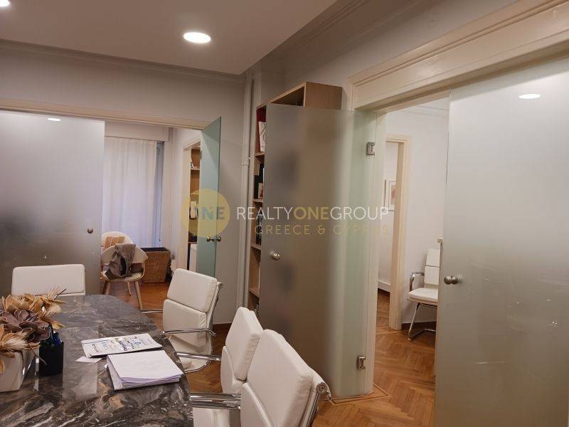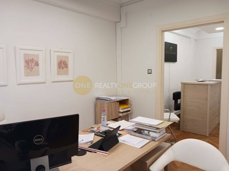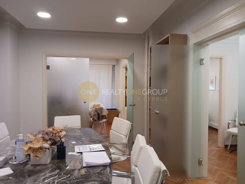 Κολωνάκι, κοντά στον Άγιο Διονύσιο, σε πολύ αρχοντική πολυκατοικία, υπερυψωμένο ισόγειο γραφείο επιφανείας 112τμ. Το ακίνητο είναι πλήρως ανακαινισμένο το 2018, είναι προσόψεως και πολύ φωτεινό. Αποτελείται από 4 μεγάλους χώρους, χωλ, χώρο κουζίνας με kitchenette, μπάνιο και wc. Διαθέτει ξύλινα δάπεδα, κουφώματα αλουμινίου με διπλά τζάμια, ψευδοροφές με κρυφό φωτισμό, κλιματισμό, καλωδίωση και συναγερμό. Έχει ελάχιστα κοινόχρηστα και είναι μισθωμένο μέχρι τον Ιούνιο 2026. Είναι ιδανικό και για επένδυση.