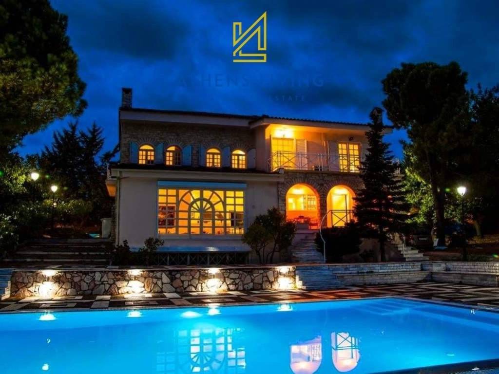 EXCLUSIVE MANDATE In a breathtaking and exceptionally tranquil location, just 6 km from Malakasa and 5 km from the beach of Oropos, this outstanding 205 sq.m. villa, a three-level maisonette (Basement, Ground Floor, 1st Floor), represents a rare opportunity for those seeking quality of life, luxury, and a close connection with nature. Built on an impressive lush green plot of 6,850 sq.m., the property offers absolute privacy and unobstructed forest views, creating a true oasis of relaxation. The residence features: 3 comfortable bedrooms Spacious and bright living room Functional kitchen 2 bathrooms Large and luxurious reception areas, ideal for entertaining and family moments Fireplace, adding warmth and ambiance The outdoor area is highlighted by a private swimming pool, harmoniously set within a beautifully landscaped garden filled with trees, fruit trees, and flowers, offering unique moments of relaxation and contact with nature. Additional features: 4 parking spaces Storage room of 90 sq.m. Aluminum window frames with double glazing & insect screens Marble & wooden floors Built-in wardrobes 5 air-conditioning units (A/C) State-of-the-art alarm system Miele household appliances The location combines easy access, close proximity to the sea, and direct connection to public transportation, making the property ideal both as a permanent residence and as a holiday or investment property. Ideal for Golden Visa A unique high-specification estate, offering luxury, nature, and strong investment value, in one of the most peaceful and privileged areas of the region—just minutes from the city and the sea. COOPERATION WITH REAL ESTATE AGENTS IS WELCOME.
