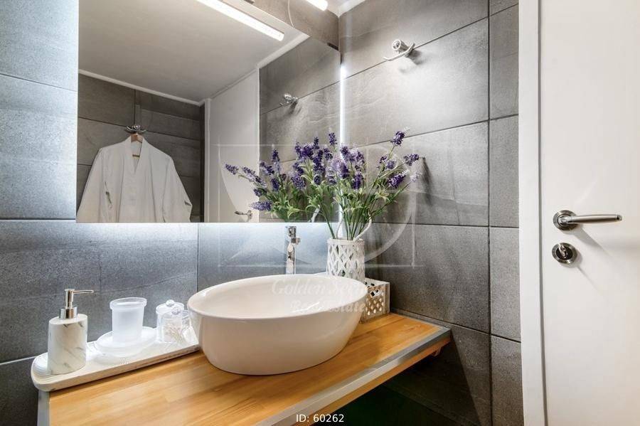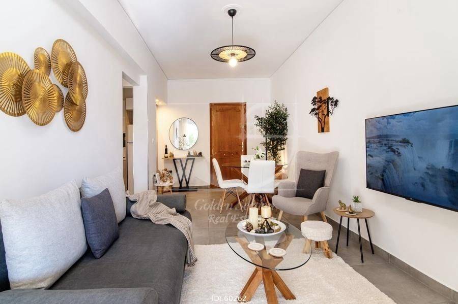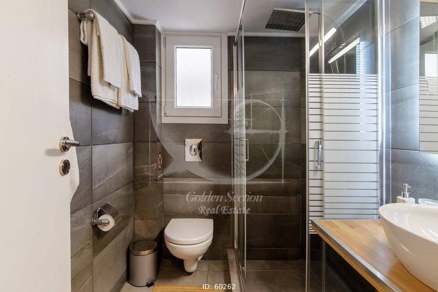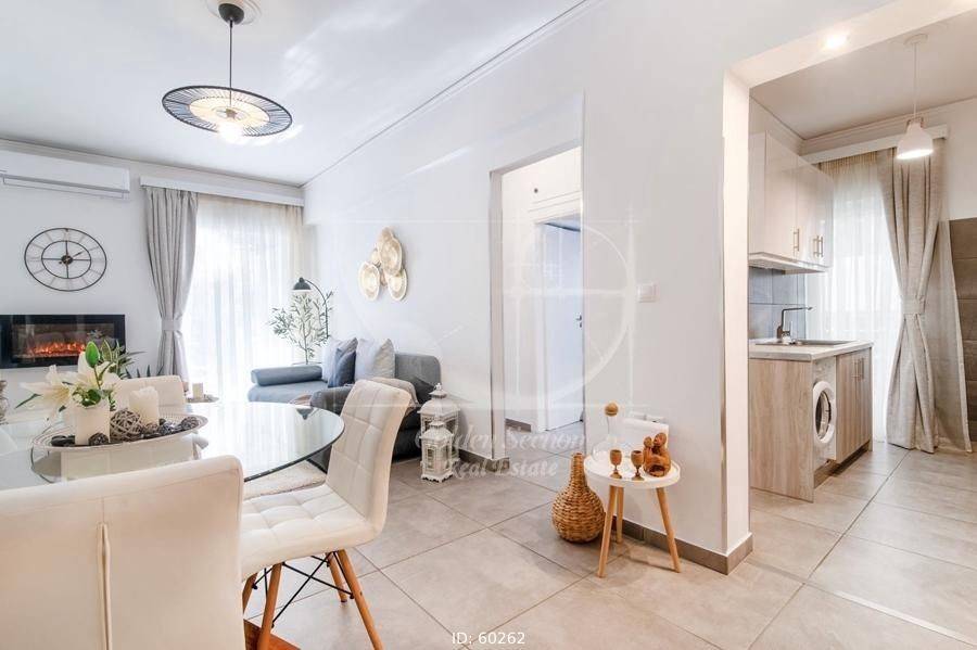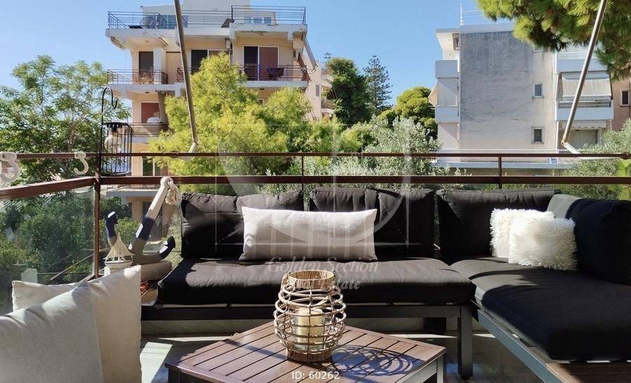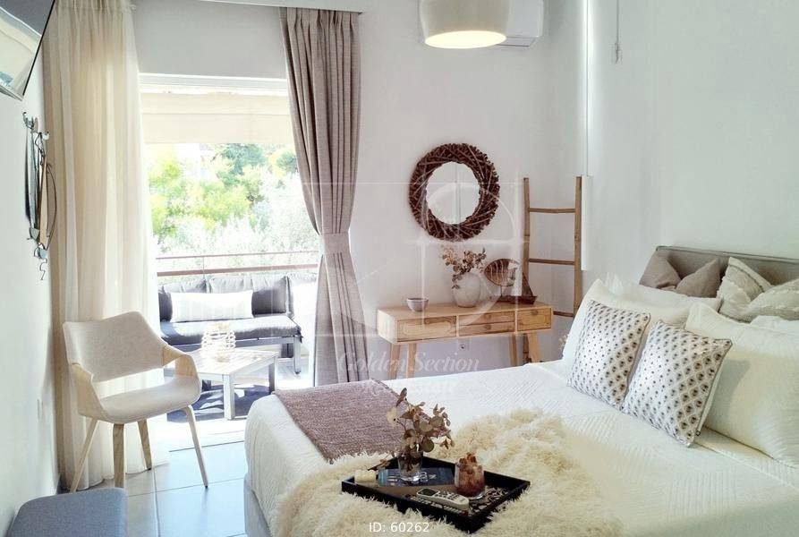 Vari, Varkiza - Apartment 52sqm bedroom, levels 1, 2nd, renovated, year built 1978, energy class D, living room, kitchen, bathroom, heating type: autonomous (oil), air condition, dual aspect apartment, luminous, sea view, frontage, painted, electric roller shutters, balconies, large balconies, tents, elevator, aluminum frames, door screen, ceramic tiles floors, secure door, internet, pets allowed, within city plan, residential zone, sea front (1st row), access from asphalt, close to sea (up to 100m).