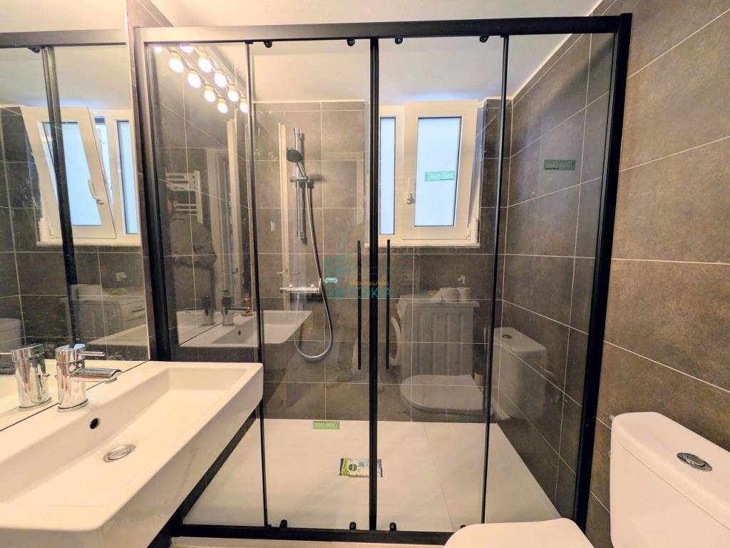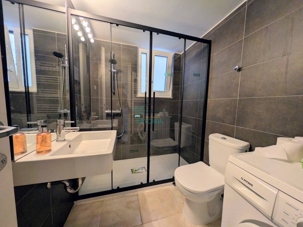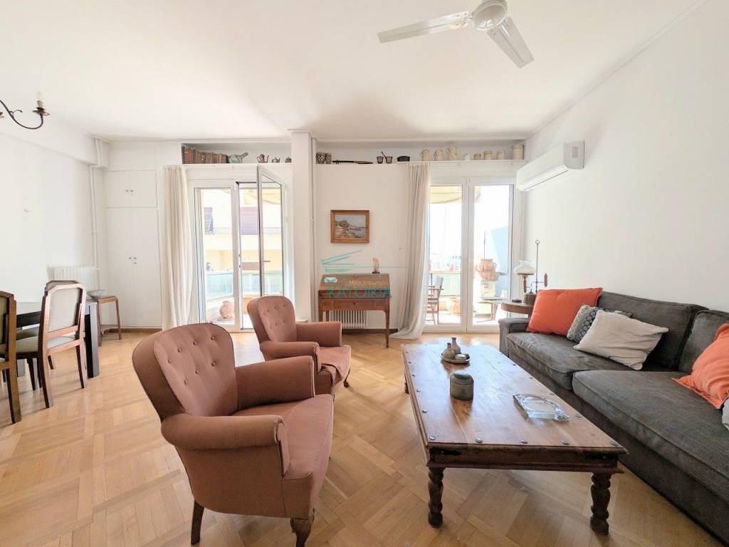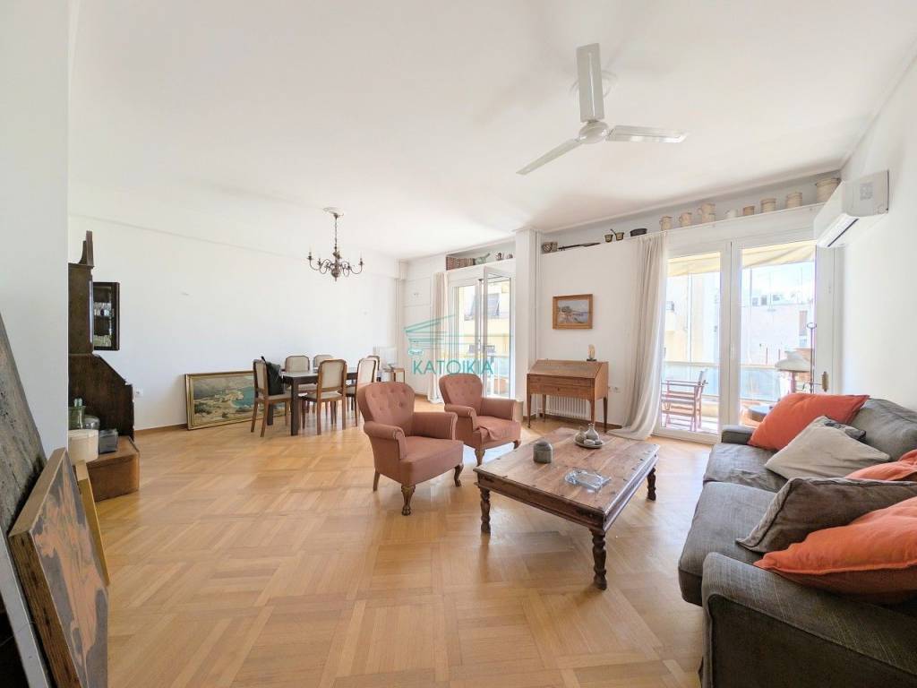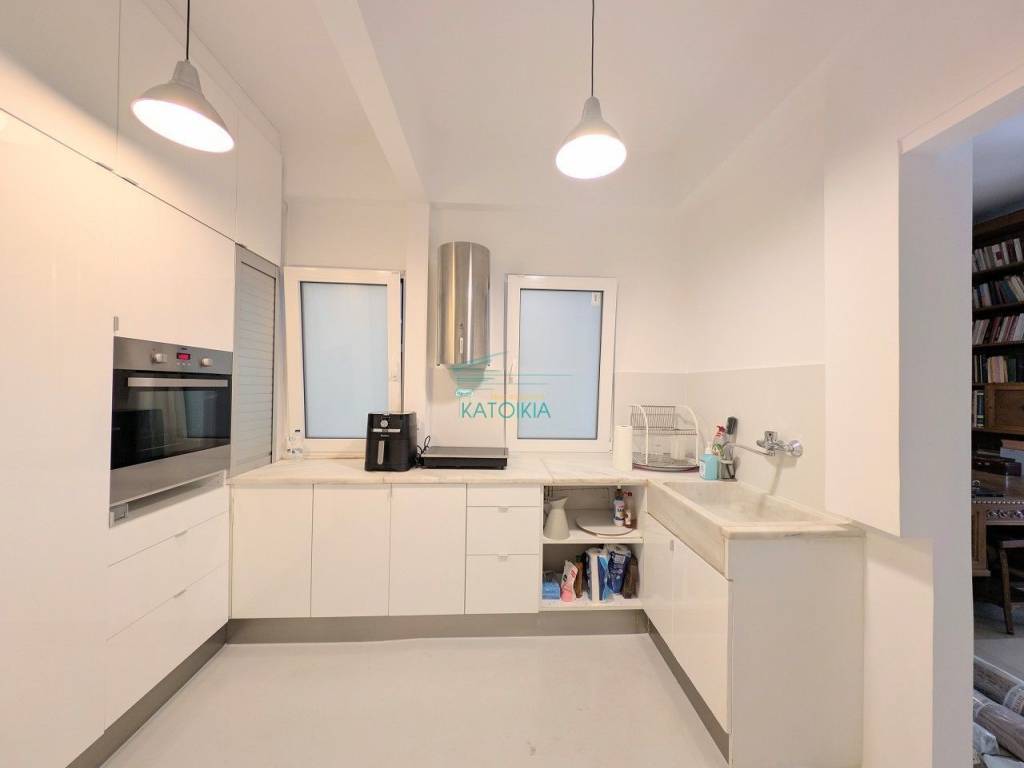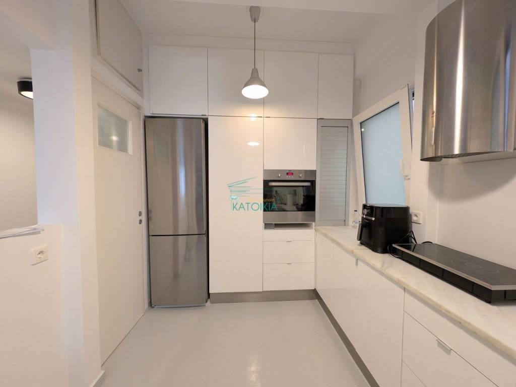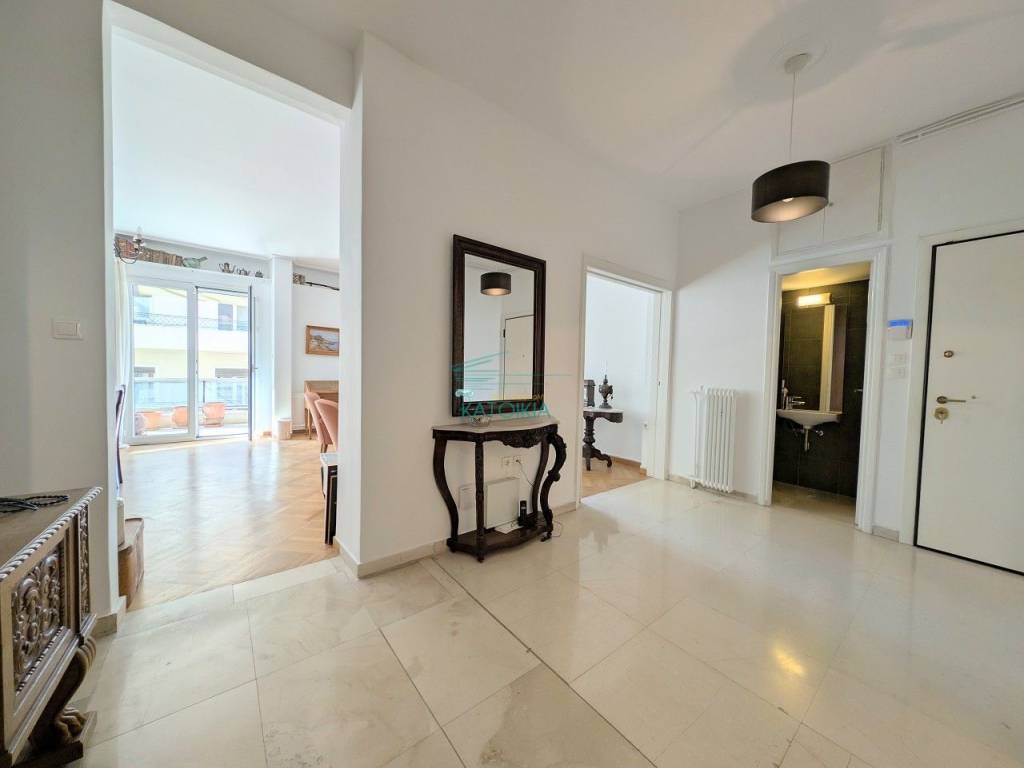 A fully renovated apartment of 116 sq.m. on the 3rd floor, extremely bright in a well-kept apartment building near Agios Dionysios Church. It consists of a beautiful reception area, a spacious living room with access to a wide balcony with an open horizon, a semi-independent kitchen with built-in electrical appliances, wc, bathroom, 2 bedrooms. It has aluminum frames, double glazing, alarm, security door, oak floors. There is a possibility of configuring a third bedroom. The apartment building has a beautiful entrance and a renovated elevator, code 58133