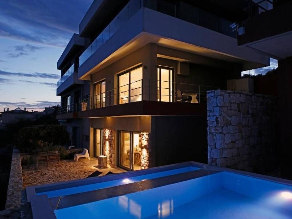 Located in an excellent spot in the Dikastika area of Schinias, this luxurious three-level residence of 160 sq.m. is offered for sale within a modern complex of four homes. The property stands out for its privileged position, offering unobstructed and breathtaking sea views toward Evia, the Petalii islands, and Kea (Tzia) — a rare and stunning natural panorama. The interior layout features an open-plan living and reception area with a modern kitchen, along with three bedrooms, each with its own en-suite bathroom. An additional guest WC is also provided. The residence is complemented by spacious terraces, ideal for outdoor living and relaxing moments overlooking the Aegean Sea. Built to high-quality standards, the property includes aluminum window frames with double energy-efficient glazing, a security entrance door, installed air-conditioning system, energy efficiency class A, and one private parking space. The residence also features a swimming pool, offering a high level of comfort and refined aesthetics.