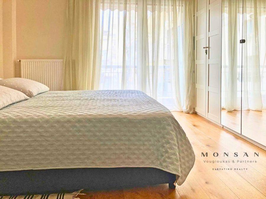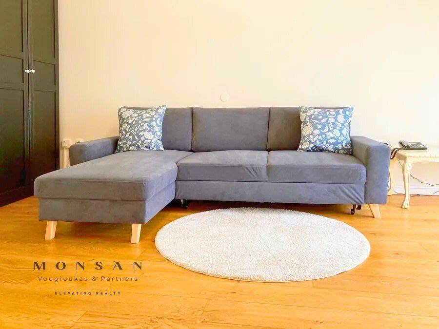 _The address indicated on the map is not the actual one, but indicative_ _AVAILABLE FROM 01/03/2026_ AGIAS SOFIAS WITH A BEAUTIFUL VIEW TO THE SIDEWALK AND THE SEA is for rent fully furnished & equipped, in an excellent location, a very beautiful front-facing and particularly bright apartment. It is a residence of a total area of ​​75 sq.m. located on the 5th floor with elevator, in a well-kept apartment building. It consists of (1) a spacious bedroom with a large wardrobe, (1) a comfortable living room-kitchen with dining area and (1) a bathroom. In addition, the apartment offers a nice front-facing balcony with awnings, while all windows are equipped with modern double-glazed aluminum frames with blinds. The floors of the house are made of wood. It also provides an alarm, a security door with electronic locking and high-speed internet (optical fiber) HEATING - COOLING: It has autonomous natural gas heating and hot water supply through natural gas equally. In addition, it also offers air conditioning cooling-heating units in all areas. Pets are not allowed. _UNTIL 01/03/2026 APPOINTMENTS ARE MADE ON WEDNESDAY AFTERNOON & SATURDAY_ _To indicate the property, it is necessary to present a police ID and VAT number_ Contact phone: 6989 50 20 24