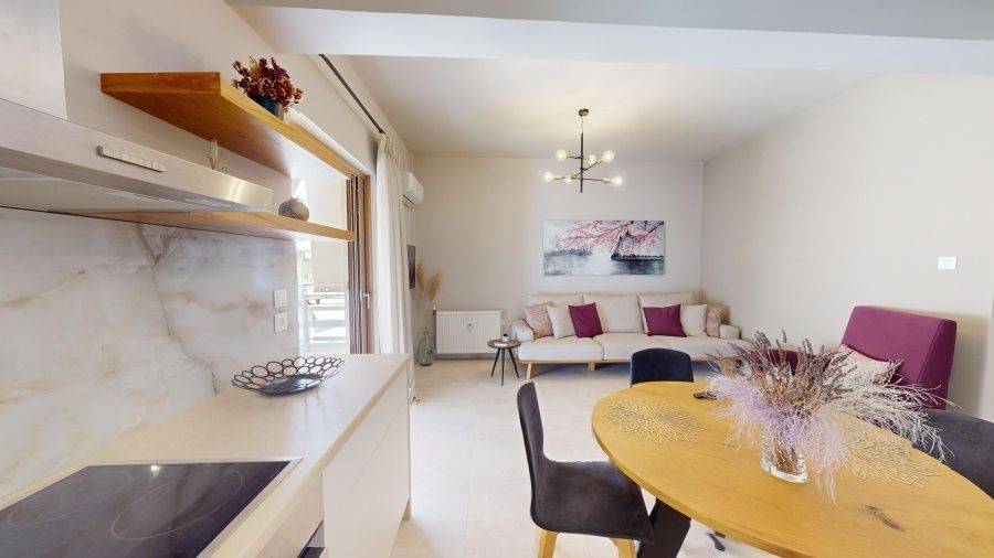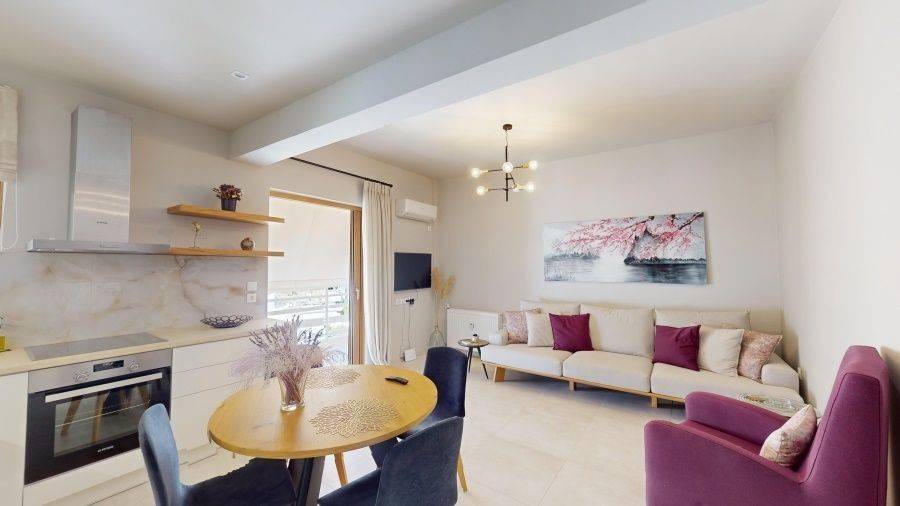 Located in the southern suburbs of Athens, in the heart of Glyfada, this particularly beautiful and stylish penthouse apartment of 52 sq.m. is available for rent on the 4th floor. It is a bright and well-maintained property, ideal for those seeking comfort and high-quality living in one of the most popular areas of Attica. The apartment consists of a comfortable bedroom, a fully renovated bathroom, and a modern kitchen with built-in cabinets and electrical appliances. The kitchen is arranged in an open-plan layout with the living room, creating a pleasant and functional everyday living space. All areas are in excellent condition, carefully maintained, and designed with great attention to detail. It features tiled flooring, aluminum window frames with double-glazed windows and insect screens, while the spacious verandas with awnings provide additional comfort and protection. The property is also equipped with a security door, video intercom, and alarm system, enhancing the overall sense of safety. Heating is autonomous, and air-conditioning units ensure cooling and warmth throughout the year. In addition, the apartment includes a solar water heater with a boiler, offering both practicality and energy efficiency. The apartment has been recently and fully renovated, comes with all necessary electrical appliances, and stands out for its exceptional brightness, as it is located on the 4th floor and offers a beautiful mountain view. It is situated in an excellent location, next to a park and playground, with immediate access to Glyfada’s market area and public transportation. The property will be available from March, for short-term stays or up to one year, depending on the arrangement.