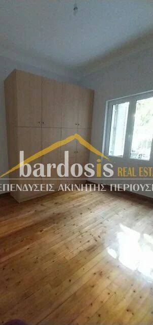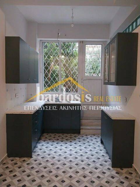 NEA SMYRNI: Apartment 105 sq.m., raised ground floor, airy, facade, bright, renovated in 2024, in good condition, with garden view, has: 2 bedrooms with oak floors, wardrobes, 1 bathroom, closed kitchen - separate, living-dining room with floor tiles, natural gas, independent heating, double glazing, screens, alarm. Pets are not allowed (Code: M-16380) refurbished, individual heating natural gas, Painted, floors, double glazing, energy class Γ, Allowed (Pets) not, situation (Status) good, kitchen (Kitchen) closed - separate, apartment, frontage, sieves, alert, natural gas, bright