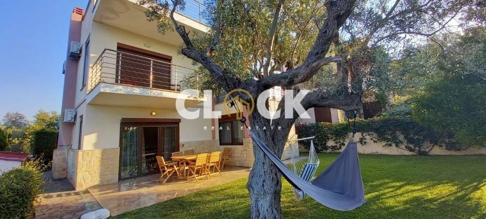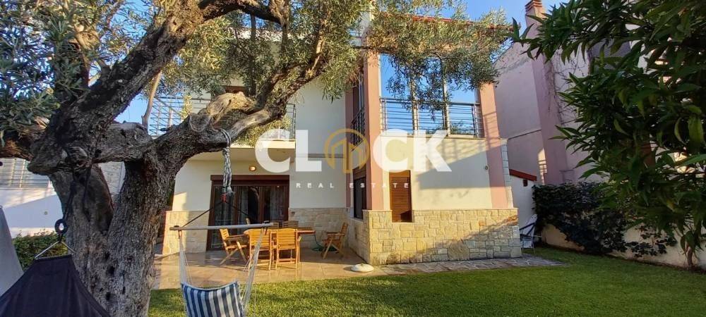 Located in the beautiful area of Kryopigi, Halkidiki, this impressive detached house of 140 sq.m. is offered for sale, featuring a private garden and stunning sea views.
