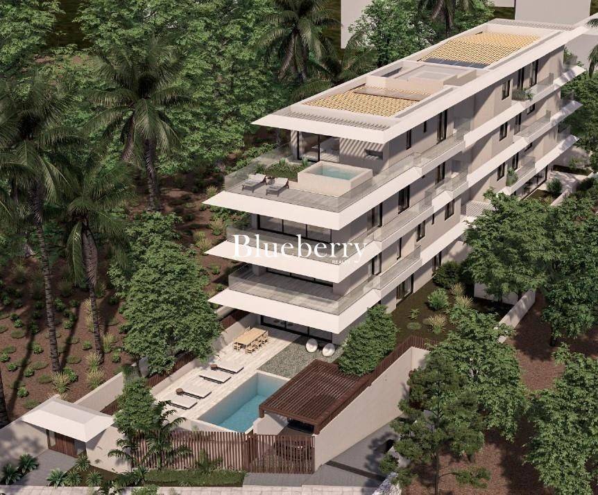 Voula, Pigadakia, Maisonette For Sale, 160 sq.m., In Plot 1200 sq.m., Property Status: under construction, Floor: 2nd, 2 Level(s), 3 Bedrooms 1 Kitchen(s), 2 Bathroom(s), 2 WC, Heating: Autonomous - Heat Pump, View: Mountain View + Sea view, Building Year: 2026, Energy Certificate: A+, 2 parking(s), Floor type: Wooden floors + Tiles, Type of door frames: Aluminum, Features: Elevator, Security door, Security alarm, CCTV, Storage room, Jacuzzi, Night stream, Satellite Receiver, Internal Staircase, Double Glazed Windows, Window Screens, Balconies, Pets Allowed, For Investment, Luxury, Penthouse, Roadside, Bright, Underfloor, Solar water system, Trees, Back yard (Garden), New Construction, Painted, Distance from: Airport (m): 21700, Seaside (m): 250, Price: 1.280.000€. Blueberry Realty, Tel: +30 210 7253300, email: info@blueberry-realty.com