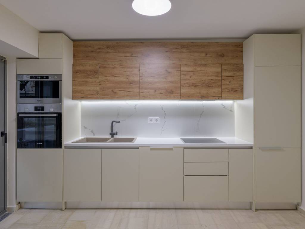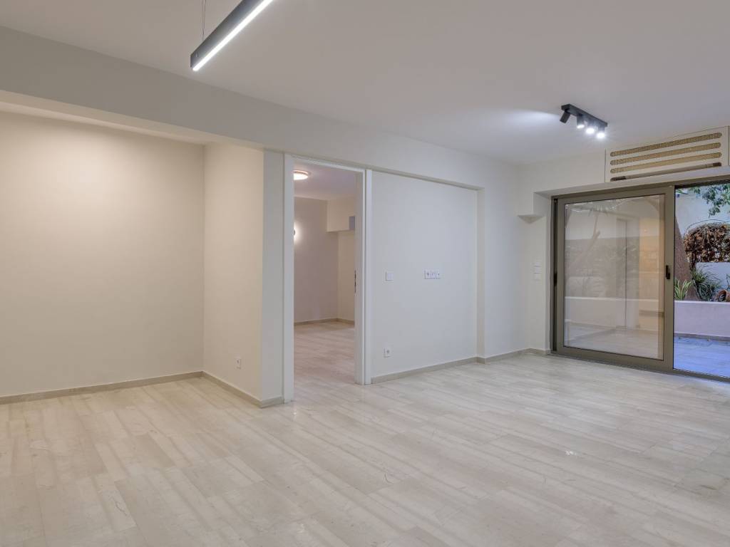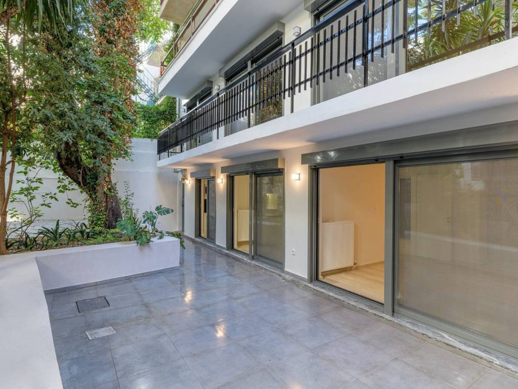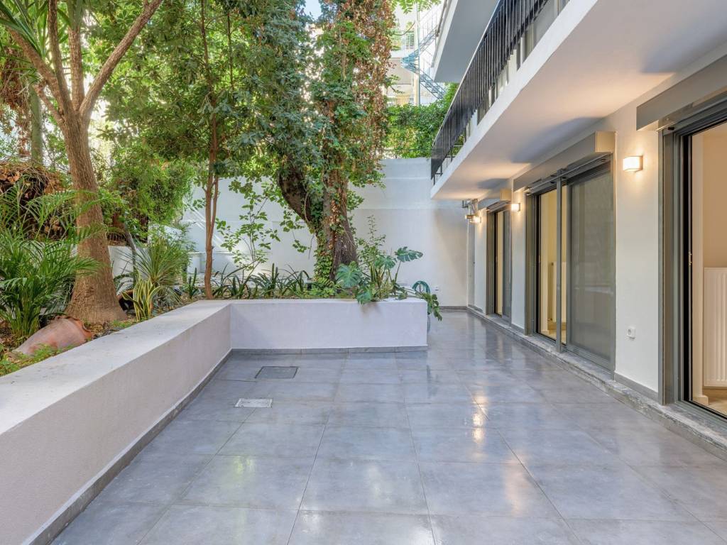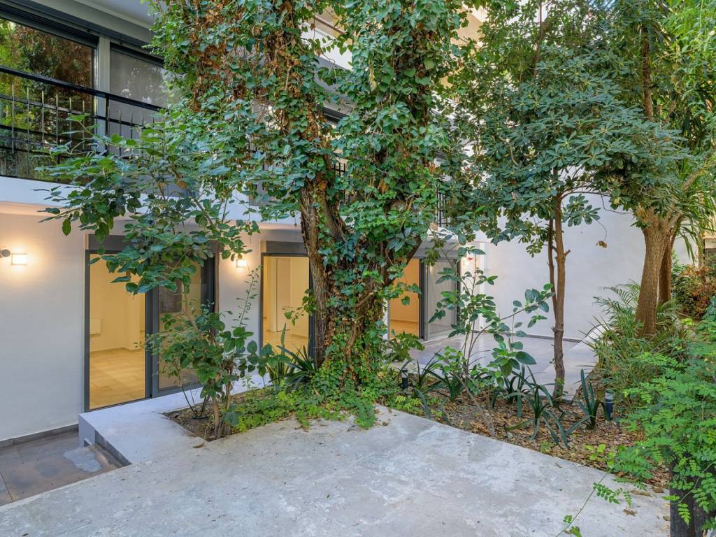 A modern apartment with contemporary interior design and a carefully planned layout, located in Lycavittos. The property offers 63sq.m. and is situated on the basement level of an apartment building which, due to the sloping ground, is at ground-floor height and has access to a beautifully designed private courtyard with trees. It features an open-plan living room with a kitchen, 1 bedroom, and 1 bathroom. The renovation was completed in the summer of 2025 with high-quality materials and with respect for the building’s architecture. A unique choice of a renovated apartment in an excellent location in Lycavittos.