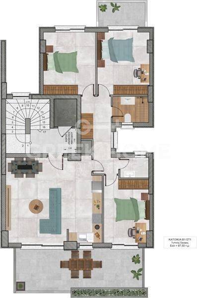 Nea Ionia (Attica - Northen Suburbs), Perissos - Floor Apartment 95sqm bedrooms 3, 1st, under construction, constructionstage plots, year built 2025, energy class A+, living room, kitchen, bathroom, heating type: individual unit (natural gas), parking ground floor, quiet, dual aspect apartment, luminous, corner, unobstructed view view, frontage, electric roller shutters, storage space, boiler, external thermal insulation, fireplace, large balconies, elevator, thermal shut-off frames, double glazed windows, door screen, handicap ramp, secure door, video doorbell, luxurious, satellite, internet, pets allowed, close to αγορά (up to 0), close to μετρό/ηλεκτρικός (up to 0), close to εθνική οδό (up to 0), close to πάρκο (up to 0), close to αθλητικές εγκαταστάσεις (up to 0), close to πλατεία (up to 0), close to σχολείο (up to 0), close to super market (up to 0), close to νοσοκομείο (up to 0).