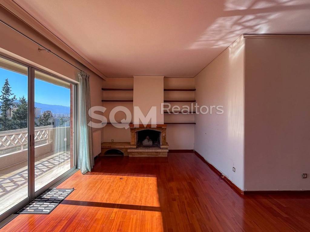 Marousi, Nerantziotissa, a penthouse maisonette on the 5th - 6th floor with a total area of 120 sqm is available for sale in a building constructed in the early 1980s. The property is located in one of the most beautiful areas of Marousi, just a stone's throw away from the Church of Panagia Nerantziotissa. Excellent construction, situated on a large plot with a lush surrounding area that harmoniously blends with the environment, in an area with plenty of greenery and unobstructed buildings all around. Arriving outside the building, you will see that while its design reflects its age, it will not bother you in any way, as it is evident how meticulously it is maintained. Nice entrance, small elevator, 5th floor, and you enter the apartment. Welcome! Light and wood. This is the first impression. The living room makes a corner and provides access to the front corner balcony facing east. To the right of the entrance door is the staircase with ornate railings leading to the upper floor. Next to the staircase is the area that grants access to the kitchen, the bathroom, and the two bedrooms. Excellent distribution of space without dead spots and an exceptional layout with the sleeping and living areas positioned correctly both in relation to each other and to the property itself. It should be noted that all rooms have balcony doors, and both bathrooms have windows. You go up to the upper floor and find yourself in the area that will be your office or your retreat. A small room with its own bathroom and immediate access to your huge private roof garden. And by saying private roof garden, we mean a terrace for exclusive use with an area of 150 sqm, offering panoramic views of the whole basin. What more could you ask for? In summary: a corner property on the 5th-6th floor, 120 sqm, consisting of a living room, separate kitchen, 2 bedrooms, office, 2 bathrooms with windows, large balconies, exclusive use of roof, parking space in the pilotis, storage room of 4 sqm, autonomous heating with individual natural gas boiler, floors of African Doussie and tiles, fireplace, first-generation aluminum frames with screens, solar water heater, security door, intercom, unlimited view. Distance from: ISAP Marousi Station 1,000 m ISAP Nerantziotissa Station 850 m 9th Primary School of Marousi 200 m 3rd Gymnasium 250 m Childcare center 20 m Pharmacy 20 m Exit to Kifisias Ave. 1.2 km It should be noted that the property is leased for another two years with a rent of €1,100 per month. The new owner must respect the lease. Price: €310,000 (The brokerage fee amounts to one month’s rent plus 24% VAT)