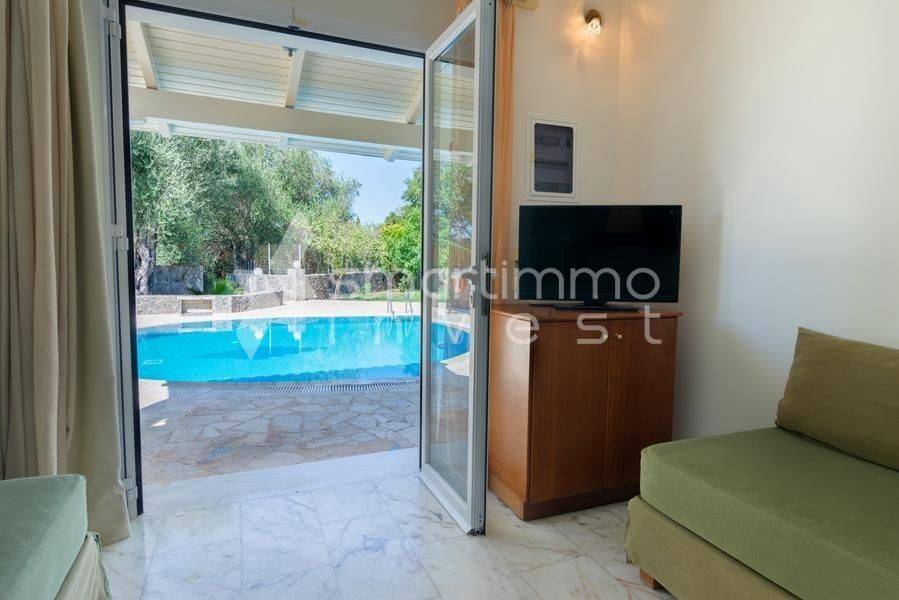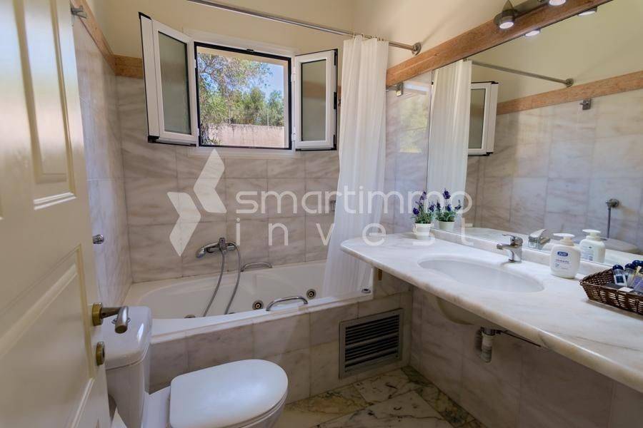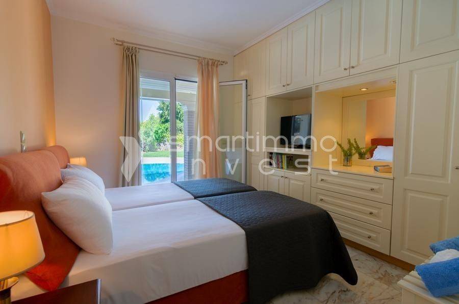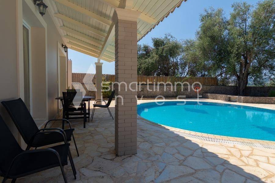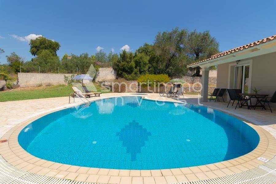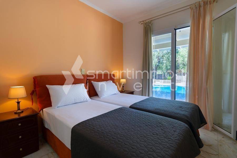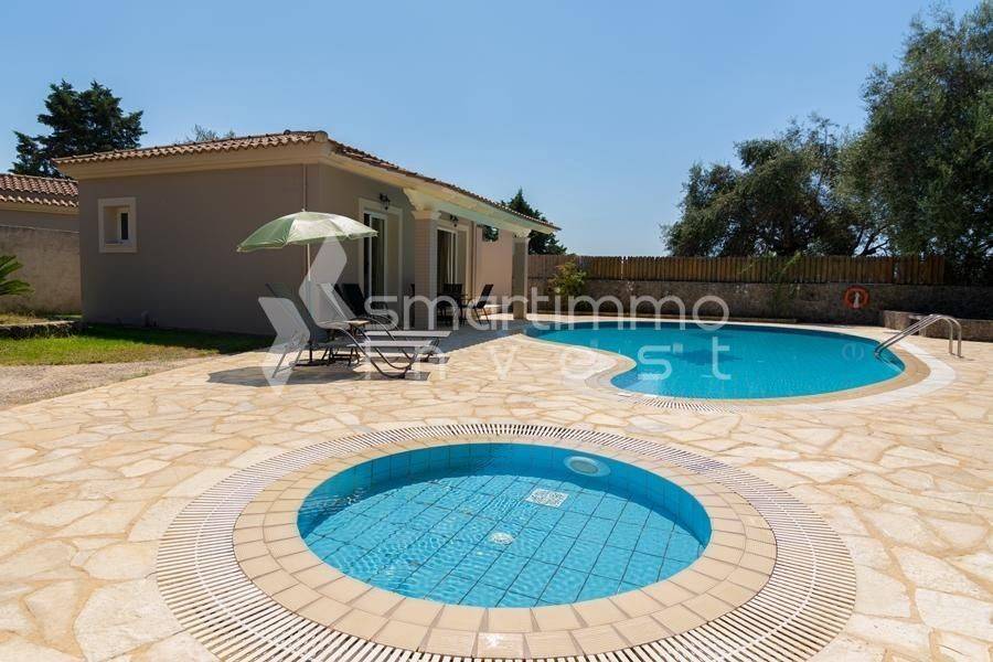 For sale is a luxurious and fully furnished villa of 80 sq.m., set on a plot of approximately 1,000 sq.m., in a privileged and peaceful location in Faiakes, on the island of Corfu. The residence is thoughtfully designed and features two comfortable bedrooms, two modern bathrooms, a bright living room and a fully equipped kitchen, offering excellent conditions for private use, a holiday home or high-standard tourist investment. The outdoor area is a key highlight of the property, boasting a private swimming pool, a separate children’s pool and a beautifully landscaped garden that ensures privacy and relaxation. The generous plot of approximately 1,000 sq.m. provides openness and additional potential for outdoor leisure enhancements. The location perfectly combines tranquility with easy access to essential amenities and nearby beaches, making this villa an exceptional investment opportunity in one of the island’s most sought-after areas.