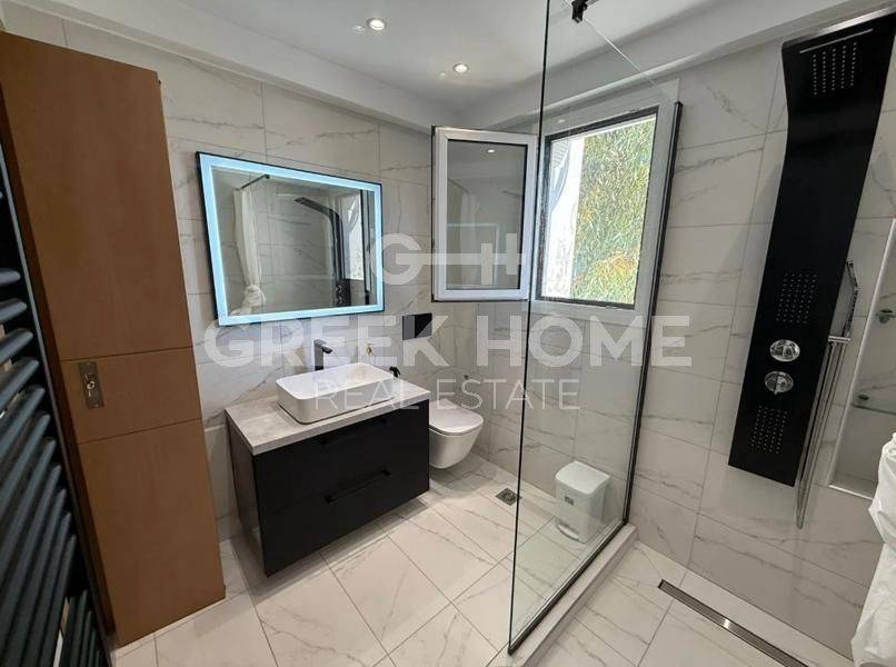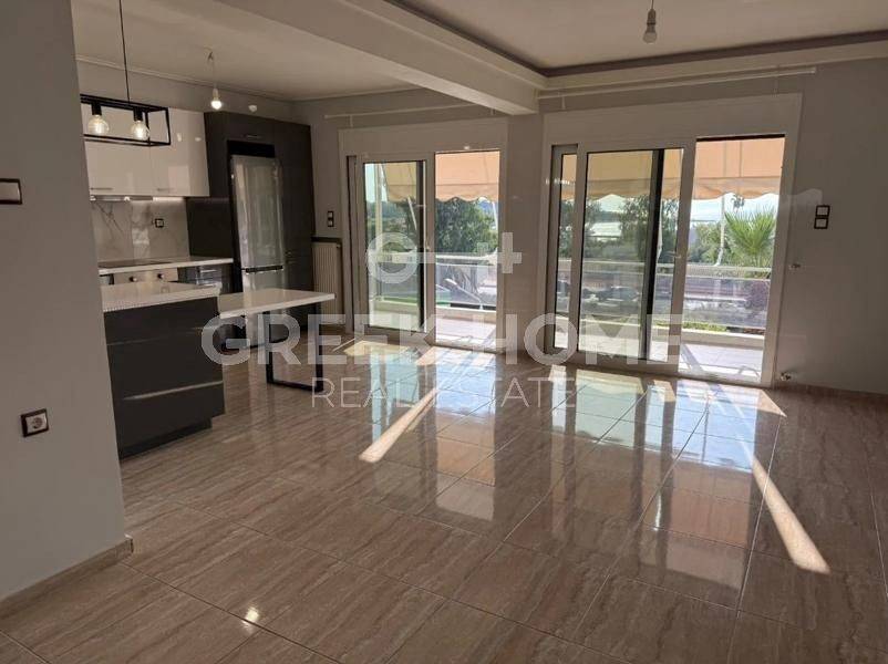 Glyfada - Apartment 85sqm bedrooms 2, 3rd, renovated, year built 1975, renovation year 2021, energy class E, living room, kitchen, 2 bathrooms, heating type: central (oil), air condition, quiet, dual aspect apartment, luminous, sea view, frontage, painted, balconies, tents, elevator, aluminum frames, double glazed windows, door screen, secure door, alarm, luxurious, internet, pets allowed, investment property.