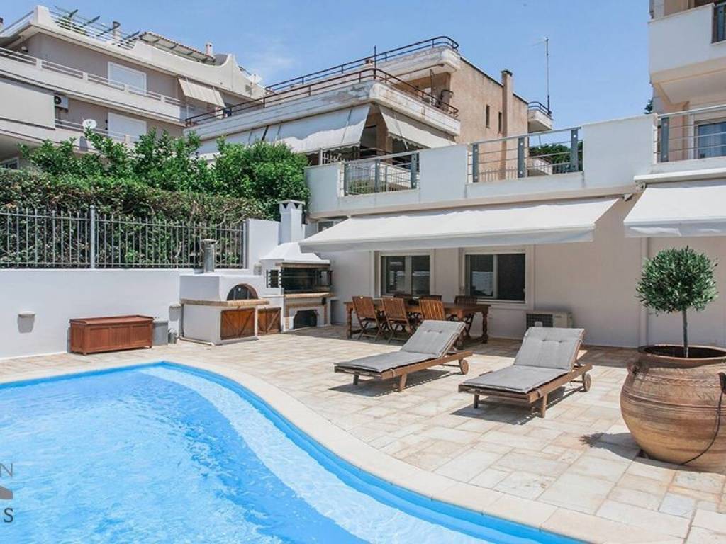 This 250 sqm maisonette is a unique opportunity, located in a prime area near the center of Voula, yet nestled in a quiet neighborhood. Built in 2007 with high-quality materials both inside and out, it ensures maximum comfort. The property spans two levels (ground floor - 1st floor) and features two bright and airy living rooms, each with a fireplace, two modern open-plan kitchens, four bedrooms (two en suite with walk-in closets), and four bathrooms. The outdoor area boasts a private swimming pool, offering a serene and relaxing atmosphere. Additional features include Energy Class A+ efficiency, autonomous heating (oil), air conditioning, wooden flooring, an interior stairway, aluminum frames, double-glazed windows, mosquito screens, awnings, electrical appliances, and furnished interiors. Security is enhanced with a security door and an alarm system. The property also includes a storage room, a beautifully landscaped garden, a BBQ area, and one closed parking space.
