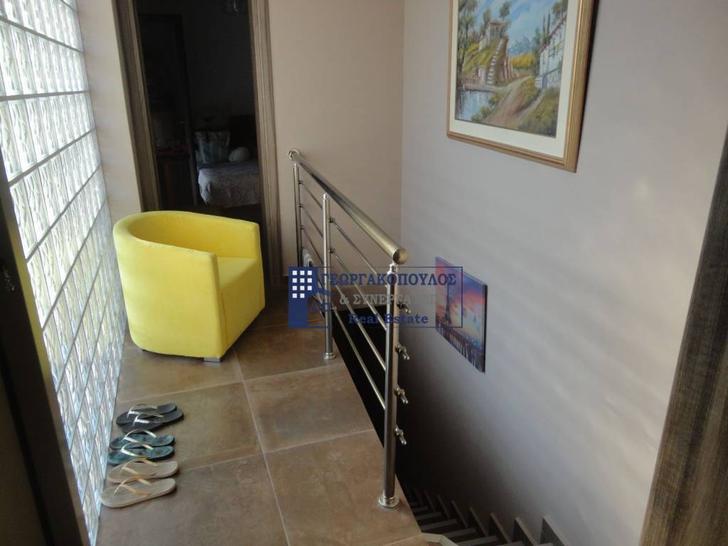 KOROPI: detached house 130 m2, in a 150 m2 plot, corner, built in 2021, in 2 levels (ground floor and 1st floor), with 4 bedrooms (2 masters), living room with energy fireplace and open plan kitchen, 3 bathrooms, big balcony on the 1st floor (approximately 60 m2), individual heating with electrical panels, solar heating, a/c (3 units), electrical appliances in the kitchen (oven, kitchen hobs and kitchen hood), 2 security doors (1 on each floor), alarm, energy-efficient aluminum frames with double glazing, mosquito nets, garden with porch, parking on the ground floor, in a quiet and easy accessible area, with the option to be given furnished, price € 1.200 (listing code 3604), (the location on the maps is indicative). GEPORGAKOPOULOS & ASSOCIATES, 10 Zeppou str. - Glyfada 166 75, mobile +30 6938799245.