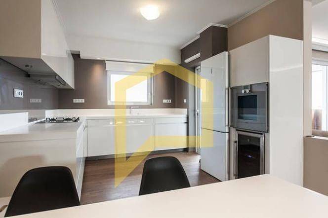 GLYFADA Centre, newly built apartment 180 sq.m, 3rd floor, 3 bedrooms (1 master), 2000 construction, 2 bathrooms, 1 wc, fully furnished, central gas heating, air conditioning, fireplace, security door, solar , mountain views, garage, storage, renovation 2014 synargermos, storeroom of 12 sq.m., luxurious, 2 guarantees required.