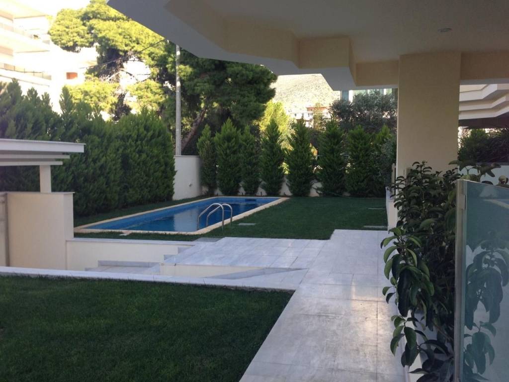 πολυτελές ισόγειο διαμέρισμα 65 τ.μ. στην περιοχή Αιξωνή Γλυφάδας, κατασκευής 2013, πλήρως επιπλωμένο και υψηλής αισθητικής. Το διαμέρισμα είναι προσόψεως και διαθέτει ιδιωτικό κήπο και πρόσβαση σε κοινόχρηστη πισίνα. Αποτελείται από 1 υπνοδωμάτιο, 1 μπάνιο, άνετο σαλόνι και πλήρως εξοπλισμένη κουζίνα. Διαθέτει ενδοδαπέδια αυτόνομη θέρμανση πετρελαίου, κλιματισμό, ηλιακό θερμοσίφωνα, δορυφορική κεραία, ηλεκτρικά ρολά, πόρτα ασφαλείας και συναγερμό με αισθητήρες στη βεράντα. Τα δάπεδα είναι ξύλινα (δρυς) και τα κουφώματα αλουμινίου. Συμπεριλαμβάνεται θέση υπογείου πάρκινγκ. Ενεργειακή κλάση Α.