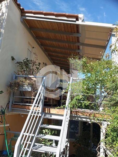Gerakas, Stavros - Independent Maisonette 230sqm plot 350sqm, bedrooms 5, levels 3, ground floor - 1st - attic, renovated, year built 2005, renovation year 2023, energy class A, living room, kitchen, 2 bathrooms, heating type: autonomous (oil), air condition, parking, quiet, dual aspect apartment, luminous, corner, unobstructed view, frontage, painted, storage space, solar heater, fireplace, balconies, large balconies, tents, garden, built in appliances, aluminum frames, double glazed windows, door screen, wood & tile floors, three phase electricity, night electricity discount rate, secure door, alarm, surveillance cameras, video doorbell, luxurious, internal staircase, pets allowed, within city plan, residential zone, east-southern orientation, access from asphalt.