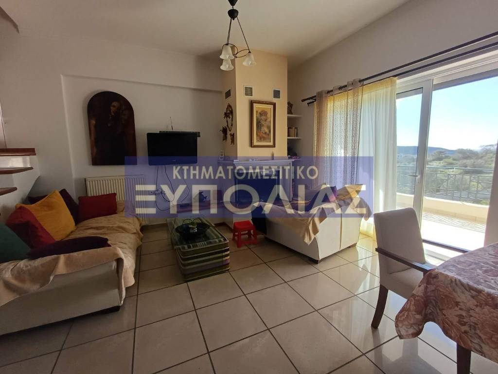 Μεζονέτα 120 τ.μ. ισογείου και 1ος όροφος, τρία υπνοδωμάτια, ένα μπάνιο, wc, σαλόνι - τραπεζαρία ενιαίος χώρος, κουζίνα, τζάκι, μεγάλες βεράντες, επιπλωμένο.