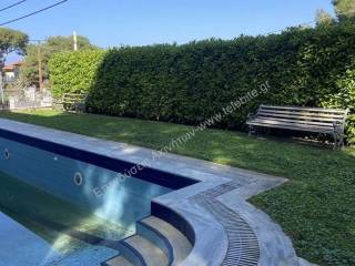 SARONIDA - in a privileged location with wide streets, an open horizon and an unobstructed view embracing the sea, an impressive, independent villa of 580 sq m is available on a plot of 750 sq m, designed to offer privacy, comfort and flexibility of use. The residence is developed in three fully autonomous properties, which are served by two elevators, an element that enhances both its functionality and its investment character (ideal for multi-family housing, or combined exploitation). On the ground floor we find a spacious 170 sq m apartment with an imposing living room and dining room, dominated by an exquisite marble fireplace. The open, fully equipped kitchen is harmoniously integrated into the space, while the three bedrooms and three bathrooms ensure absolute comfort. This level has direct access to the garden and the large heated pool, creating a resort experience within your own home. On the 1st and 2nd floors, two maisonettes of 170 sq m each are developed. On the first level of each maisonette is the living room with fireplace and balcony, a separate kitchen with a courtyard and pergola, as well as a guest WC. On the upper level, there are three bedrooms - one of which is a master - with balconies and an additional bathroom that serves the other two rooms. The floors enjoy an excellent view and a sense of freedom. In the basement are all the auxiliary spaces (boiler room, engine room), as well as storage spaces, ensuring full technical support of the residence. The surrounding area is carefully landscaped with a garden, summer living room and BBQ, while the large heated pool is the epicenter of outdoor life. In terms of equipment, the villa has autonomous heating per level (oil), triple-energy solar, boiler, radiators, air conditioning, aluminum frames with double glazing, tiled and wooden floors, security doors, alarm system and cable TV. It offers four parking spaces (three outdoor and one in the piloti). It is located just 1,000 meters from the center and beach of Saronida, combining privacy and direct access to all amenities. A luxurious residence with a clear architectural identity, multiple possibilities for development and a privileged view - ideal for both high-demand homeownership and for an investment with a strong return prospect. Price 1.950.000€, code 21189 , ADVISERS & ESTIMATES OF REAL PROPERTY, 210-9614621, 6977-380335, www.telebite.gr