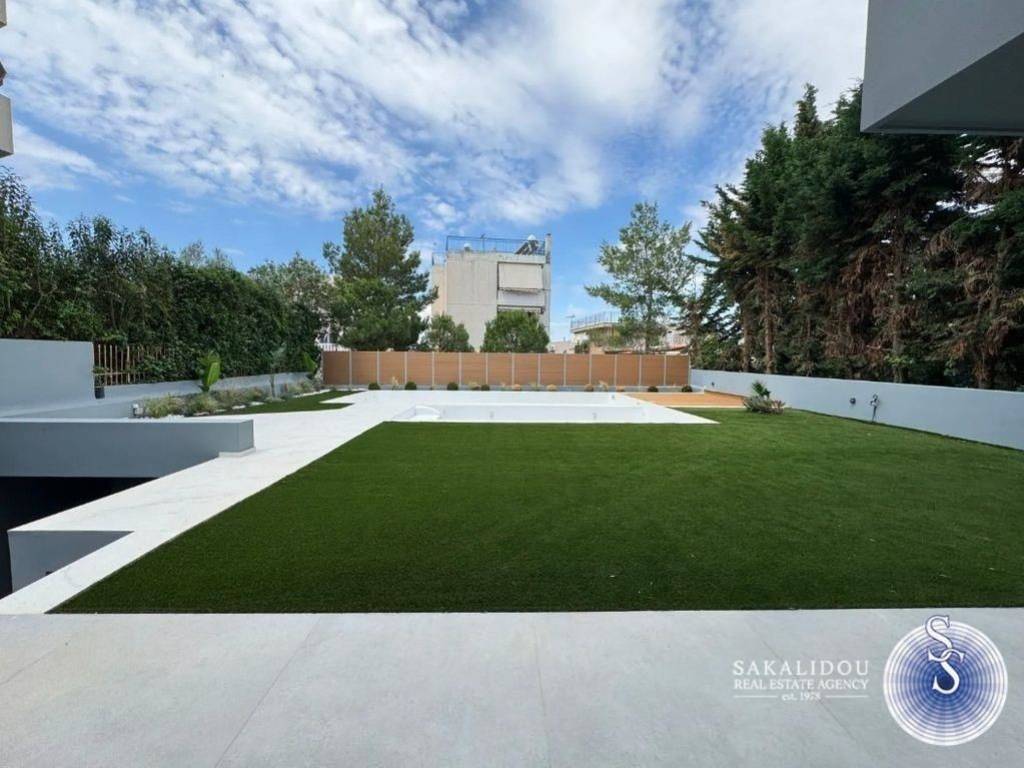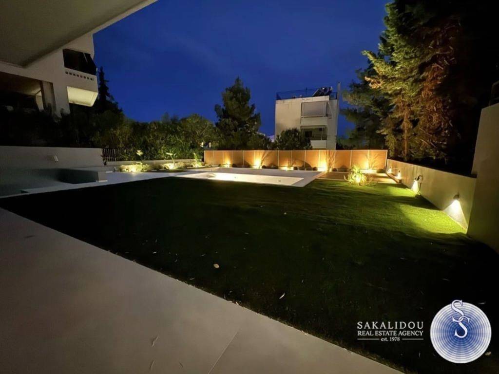 Luxurious Maisonette Combining Elegance, Comfort, and Privacy. Arranged on two levels with a total area of 220 sq.m., this residence offers spacious and bright interiors with modern architectural design and high-quality materials. The living room, featuring large glass openings, extends seamlessly to the private lush garden, creating a natural flow between indoor and outdoor spaces. The exclusive swimming pool provides moments of relaxation and absolute tranquility — ideal for private enjoyment or entertaining guests. The fully equipped kitchen comes with modern electrical appliances, while the bedrooms feature generous storage spaces. The bathrooms stand out for their minimal design and premium finishes. The property also includes independent heating with a heat pump, a security system, and two parking spaces.