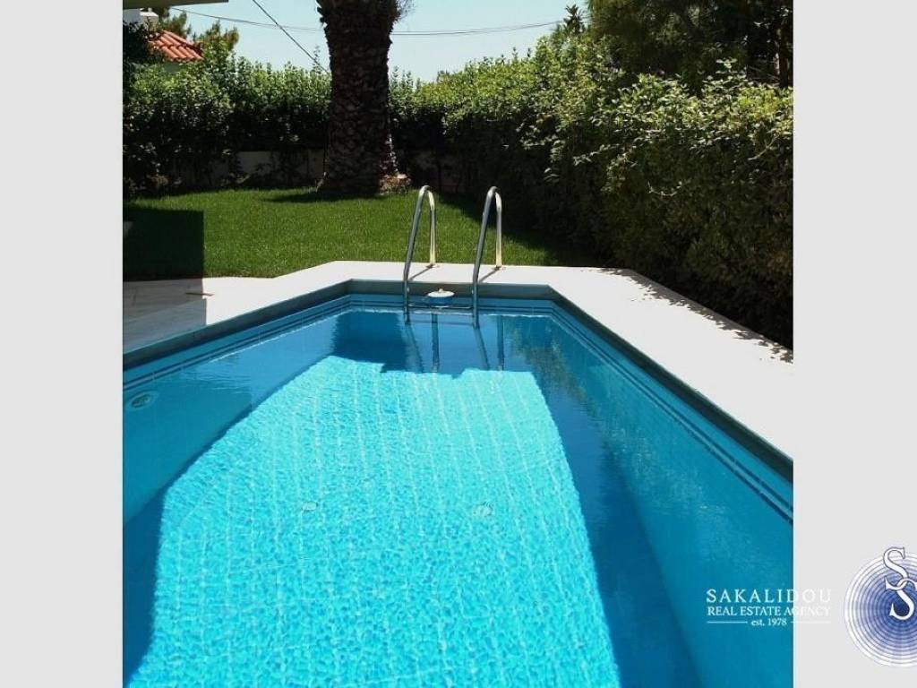 Voula, Panorama detached house of 3 levels 450 sq. metres on 600 sq. metres plot, beautiful sea view, garden and swimming pool, elevator, spacious reception area, 2 kitchen fully equipped, 7 bedrooms, 3 of them are master, sitting room with fire place, master with fantastic view and fire place, playroom, bbq, solar system, air conditioning, 4 parking spaces and storage room.