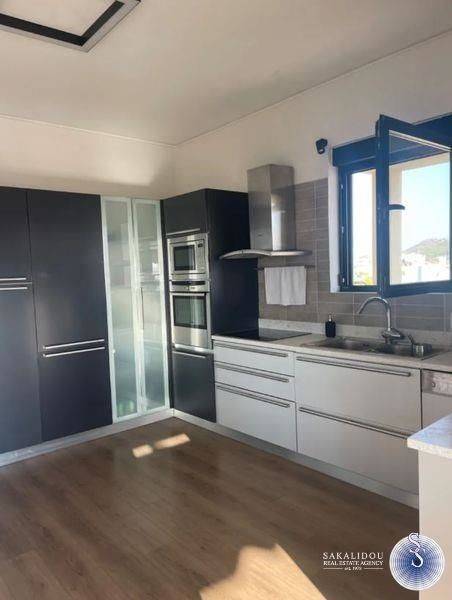 Excellent Penthouse Apartment 170 sq.m., 3rd floor with exclusive use of terrace, in a very nice and quiet area and neighborhood in Nea Kalymnos, Voula, with sea - mountain view, frontage, corner and bright, consists of a large reception area with fireplace, huge verandas around, has 4 bedrooms, one is a master, a total of 2 bathrooms, 1 WC, modern kitchen fully equipped with built-in electrical appliances, autonomous heating with individual installation (natural gas), solar, air conditioning, awnings, security door, garden 300 sq.m., nice environment, pets welcome, shared storage room, 2 parking spaces (1 covered, 1 open), electric awnings & shutters, aluminum frames with triple glazing, use of alarm from mobile phone.