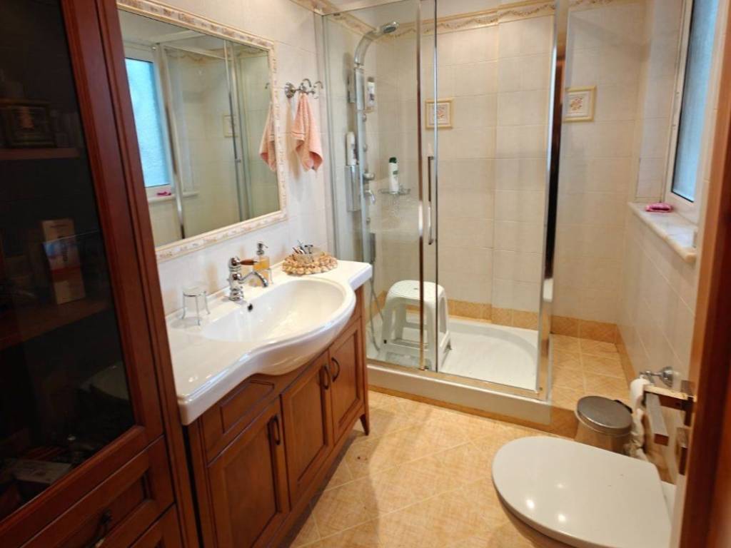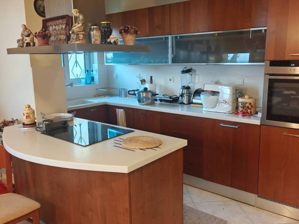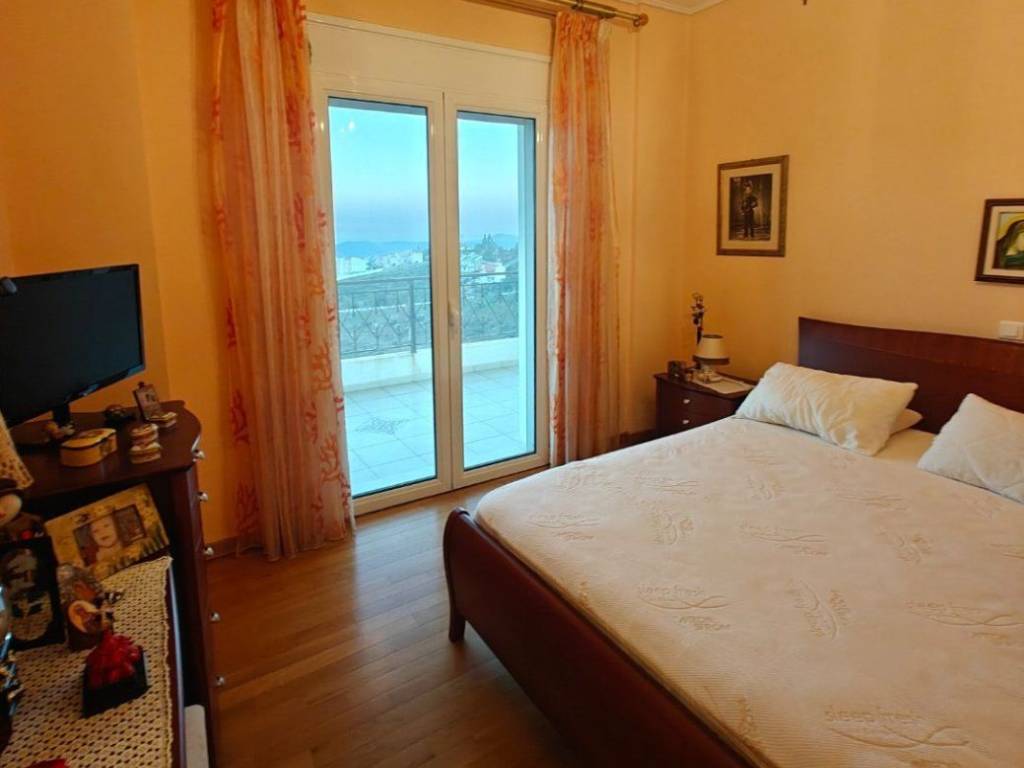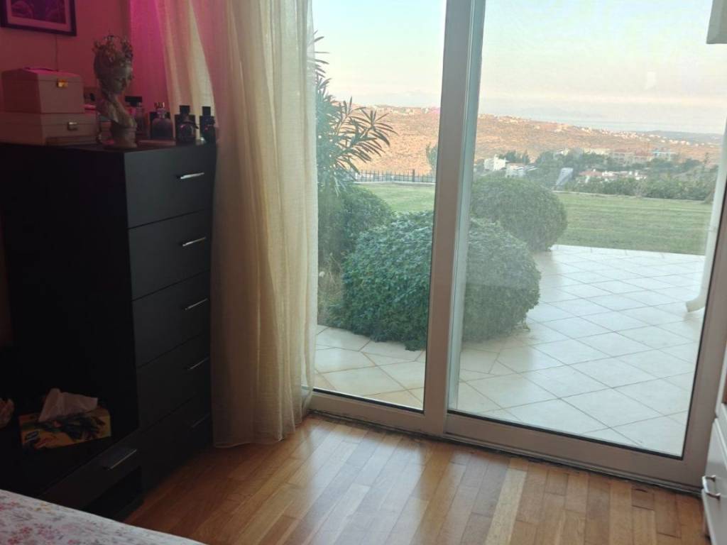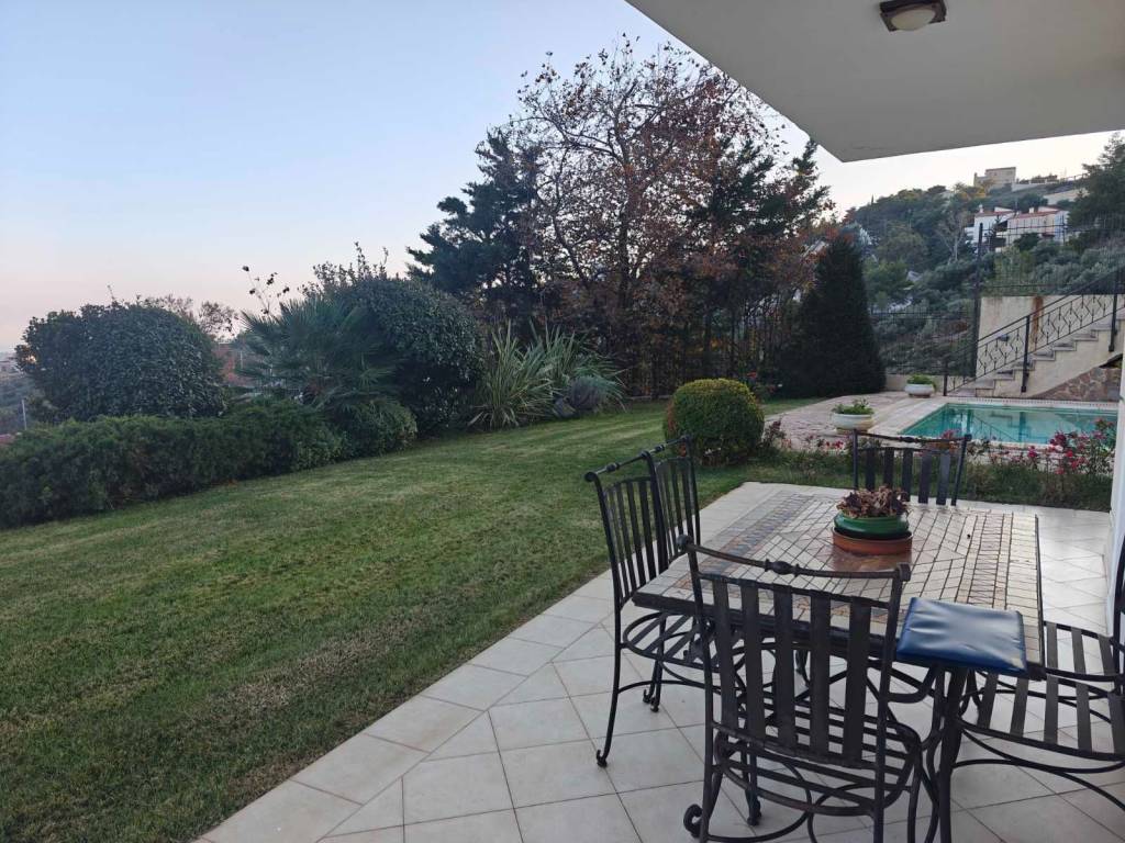 In an exceptional location in the area with excellent southern orientation and unlimited, unobstructed views, a three-level detached house. On the lower level, there is an independent apartment with a reception area and fireplace that has openings and access to the lush garden and swimming pool. Fully equipped kitchen, as well as a bedroom with its own bathroom. The other two levels comprise another residence as follows. On one level, there is a living room, dining room, spacious ergonomic kitchen, and guest toilet. On the upper level, there are three bedrooms, one of which is the master bedroom with a private bathroom for absolute comfort and privacy. The other two bedrooms share a bathroom.