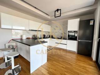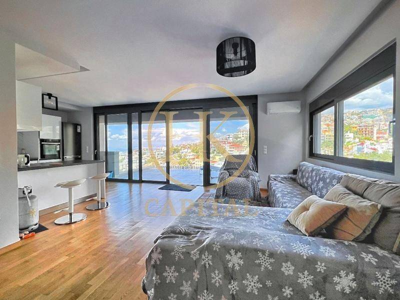 Voula, Panorama - Apartment 86sqm electrical appliances furnished, bedrooms 2, master bedroom, levels 1, 2nd, penthouse, newly built, year built 2021, energy class A, living room, kitchen, 2 bathrooms, heating type: autonomous (natural gas), air condition, parking ground floor, quiet, dual aspect apartment, luminous, sea view, frontage, electric roller shutters, storage space, solar heater, large balconies, elevator, built in appliances, aluminum frames, double glazed windows, door screen, wood floors, three phase electricity, night electricity discount rate, secure door, video doorbell, pets allowed, within city plan, residential zone, south-western orientation, access from asphalt, close to market (up to 200m), close to bus stop (up to 100m).