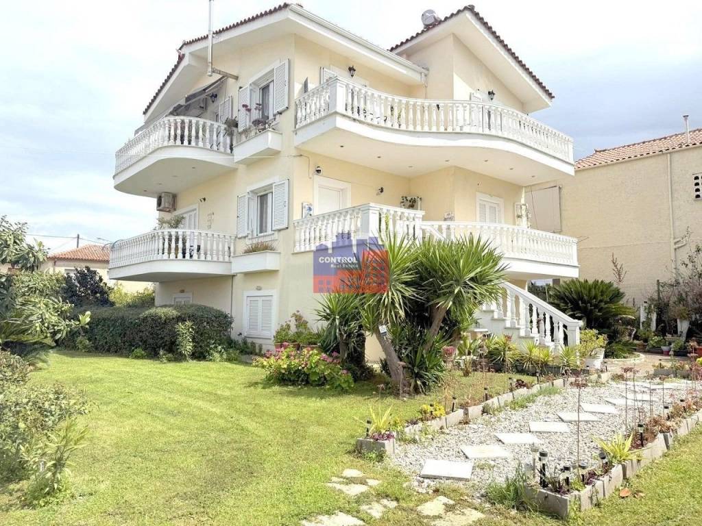 A, Monokatoikia 240 sq.m. in 600 sq.m. plot, 1st floor, county house, for investment, at residential area, for commercial use, year of construction 2003, polyteles, with view n/a, 3 b/r, 2 living rooms, 3 bathrooms, 2 kitchens, double-sided, front facing, bright, interior, heating n/a, air condition, with energy class N/A, with floor type plakaki, with n/a joinery, double glass pane, double glazing, veranda, garden, price 260.000€, code 2912